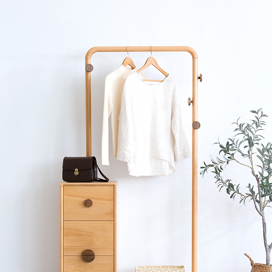 卧室里摆放一个这样的挂衣架真的太棒了,简约的设计风格,圆润的线条和边角,加上白橡木原木色的清新,在满足挂衣收纳的同时,更是一件美美的艺术品。