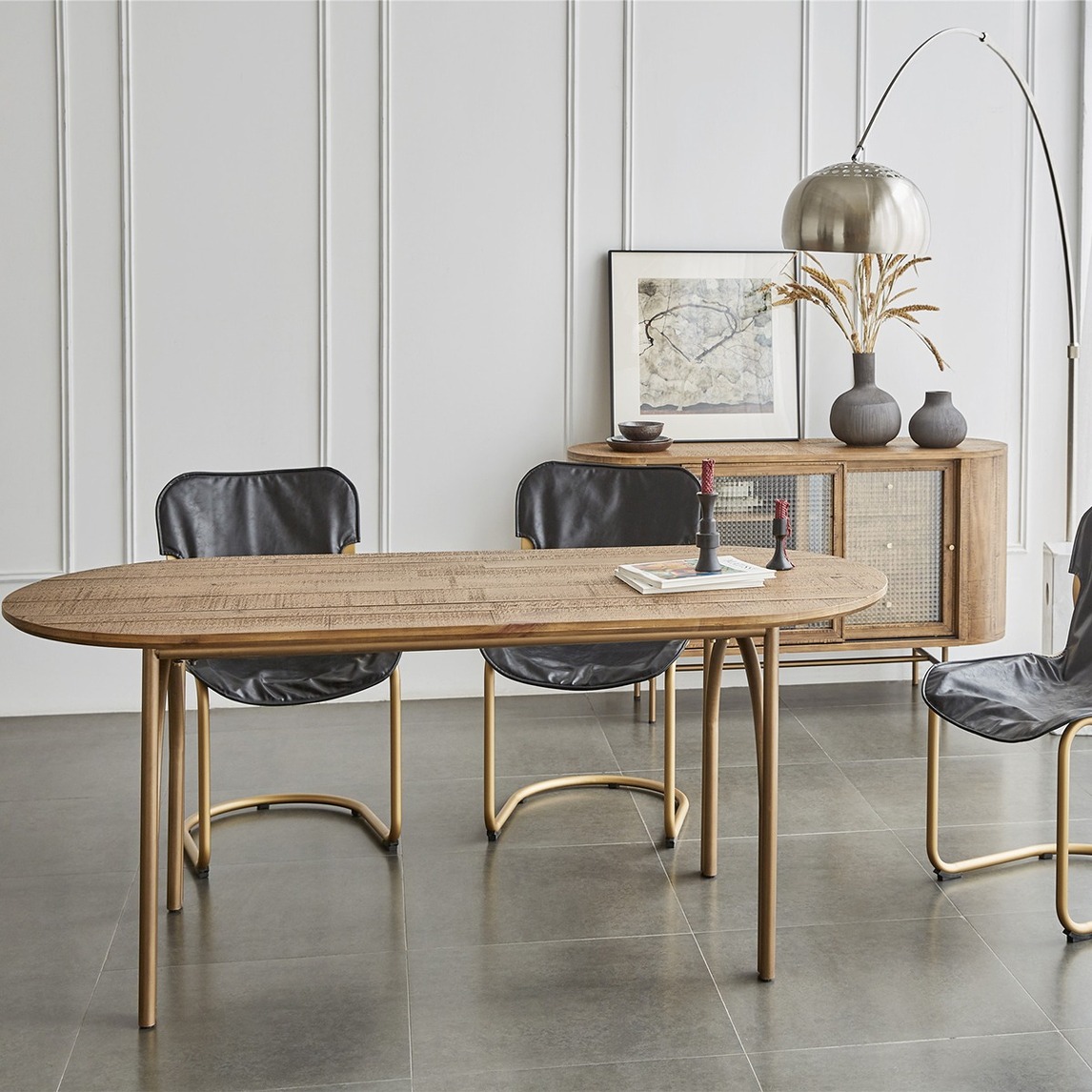 复古又不失优雅气质的餐厅,可以让用餐时光更美妙。中古风格的实木餐桌,搭配同真皮金属餐椅,配上同系列餐边柜,辅以装饰画与钓鱼灯的点缀,轻松打造一间富有优雅品位的餐厅。