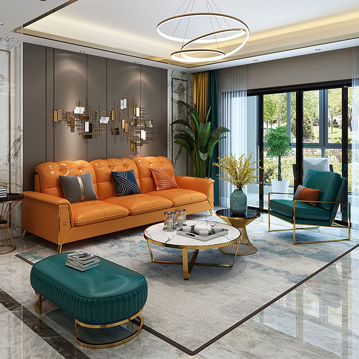 由于线条简单、装饰元素少,轻奢风格家具需要完美的软装配合,才能显示出美感。一张沙发、一个茶几,简单的线条就构成一个舒适简单的客厅空间。