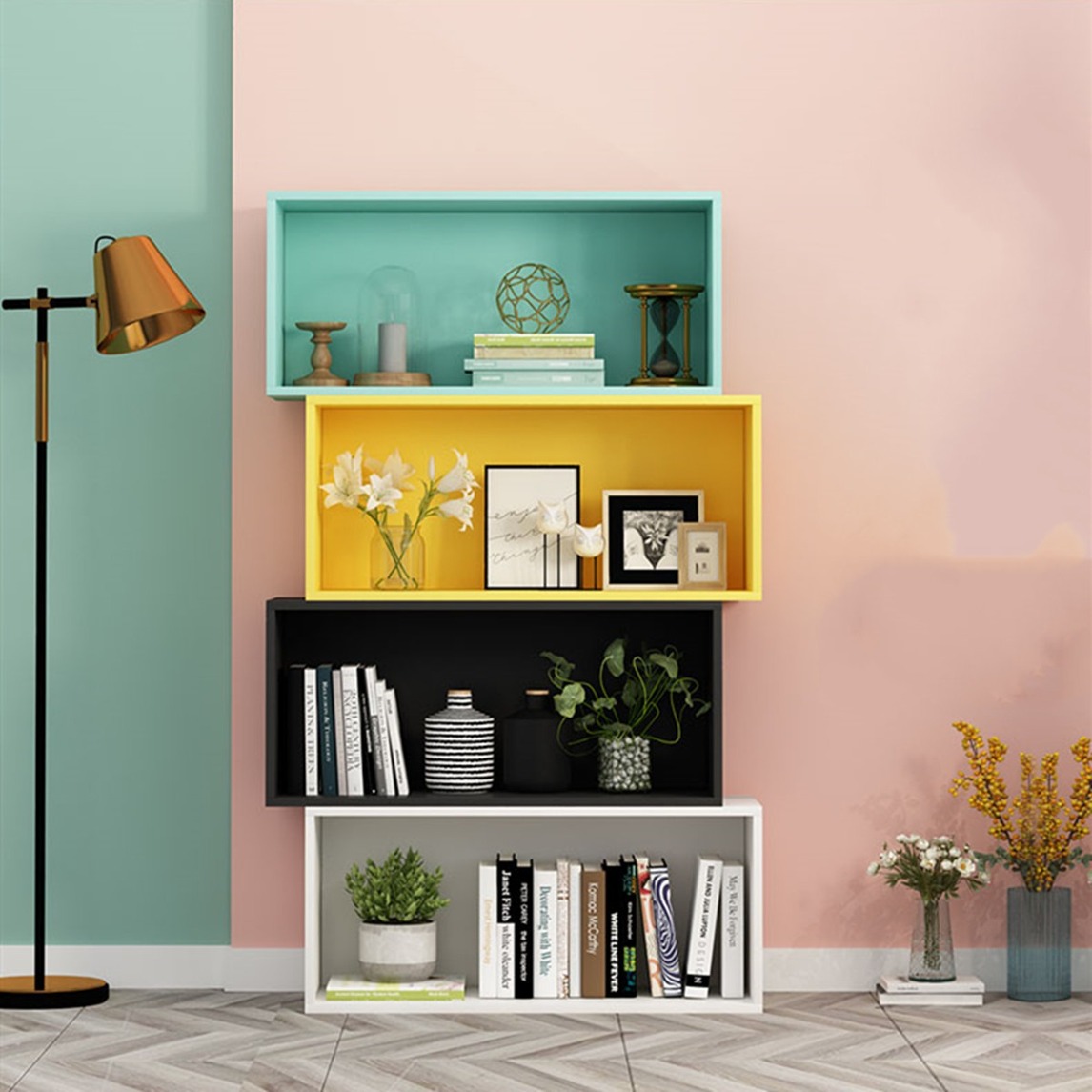 靠墙布置一个收纳空间,美观实用,选择可自由组合的柜子,不同颜色搭配,立马有格调,放在书房随意洒脱,尽享舒适阅读时光。