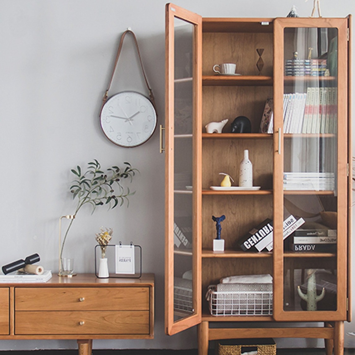 采用了多处圆角设计的书柜,整体的设计轻盈不失挺括感。书柜采用了对开玻璃(防爆钢化玻璃)柜门设计不管是放书,还是好看的摆件都可以有效防尘,避免经常清理的烦恼。