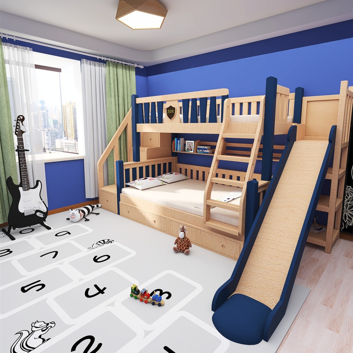 儿童上下床,满足两宝孩子睡眠需求的同时让孩子享受乐趣。木纹+蓝色的上下床,透露着干净纯洁,梯柜的设计,适合收纳存放小件物品,层架的设计,摆放孩子喜欢的东西,睡觉的时候还可以多一些孩子的乐趣。