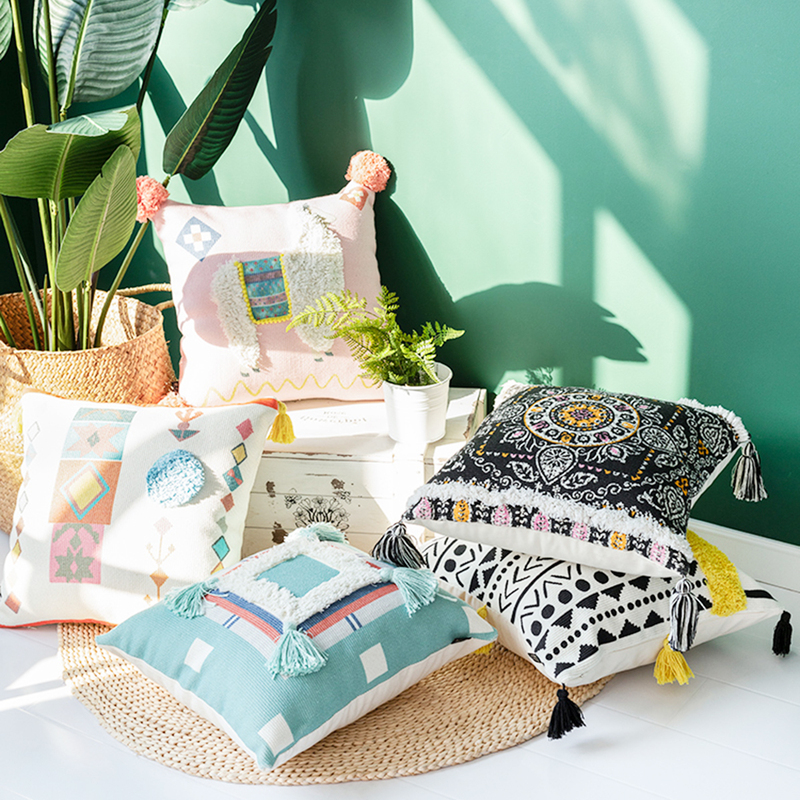 手工编织芦苇地毯,拥有自己特定的纹理,自然清新,质地柔韧,不张扬,不高调,复古的编织方法让每一块地垫都有韵味。特色簇绒工艺抱枕,流苏造型俏皮灵动,结合棉麻的舒适性,柔软舒适,弹性十足,随地倚靠。
