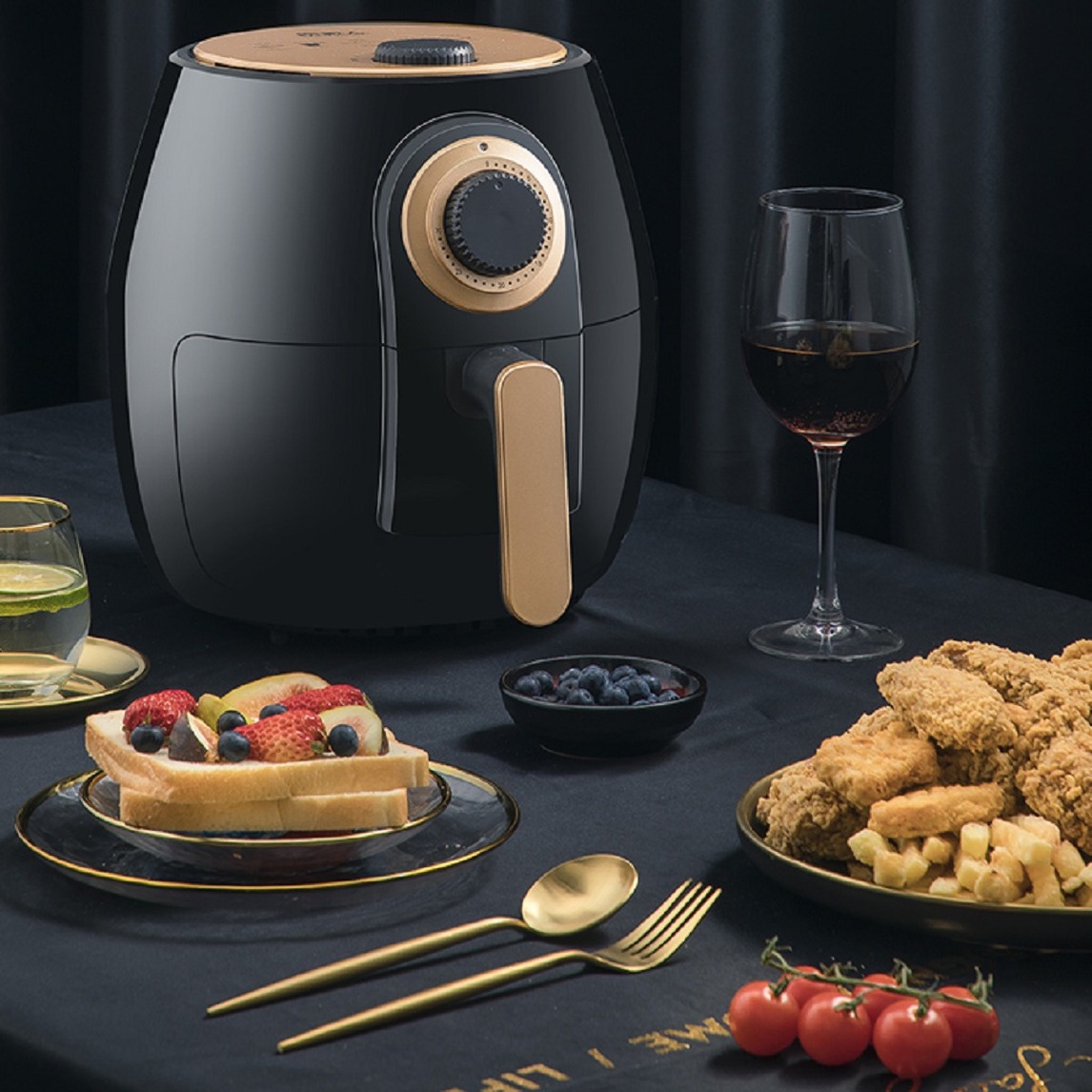 食品级不粘涂层,不沾不糊,餐餐美味,分离式炸篮,轻巧方便,一旋即启,傻瓜式操作,准确控温,空气热流代替热油,外酥里嫩,保留食物营养,低卡饮食无负担,做自己的营养师