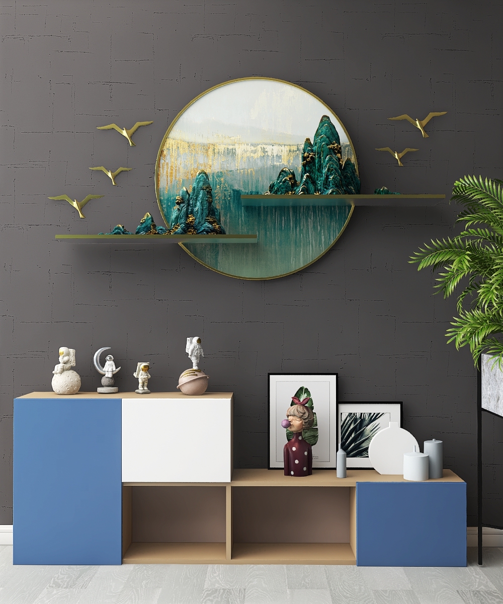 饰是"壁"与"饰"的结合,是人们利用实物及相关材料进行艺术加工和组合,与墙面融为一体的装饰。壁饰是悠远的,它透露着人类原始的艺术智慧和生活情趣