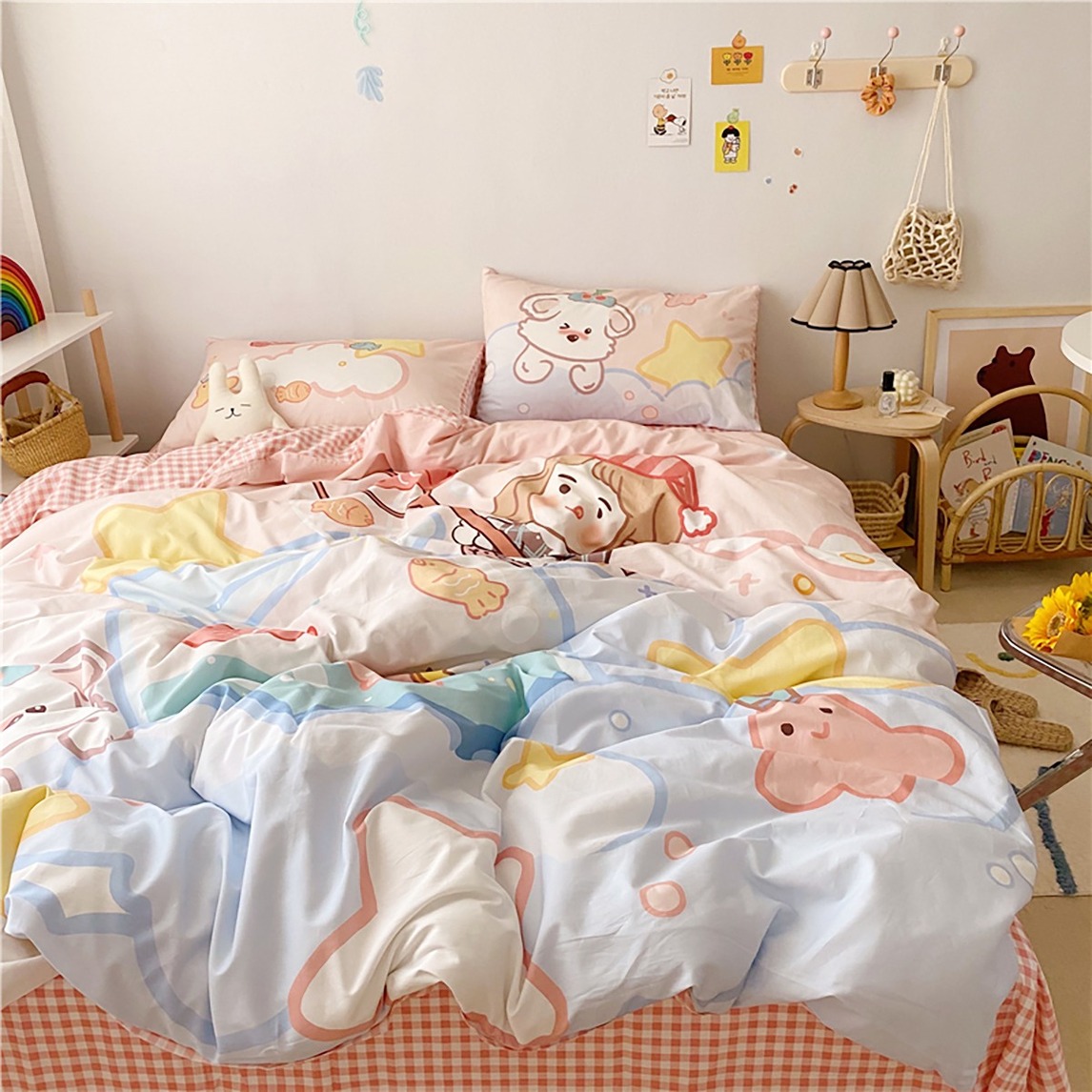 这款可爱的卡通四件套给你的卧室增加一份俏皮感,全棉的面料材质加上可爱的图案,简直就是天作之合,小仙女们千万不要错过哦~