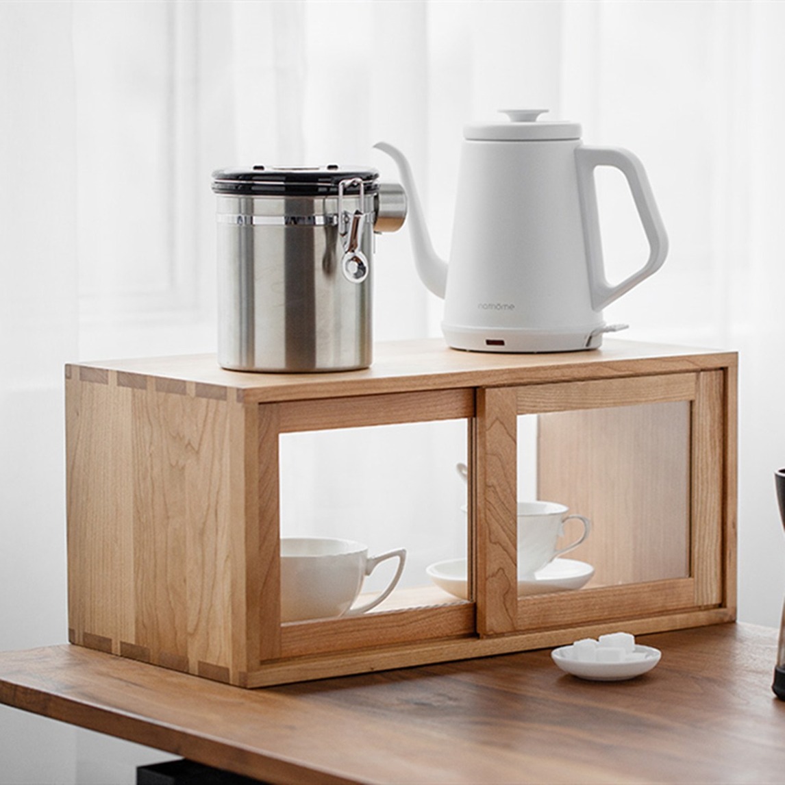 推拉门式的收纳柜,采用实木框架中嵌高透光钢化玻璃结构,透明玻璃设计,能清晰看见内部物品,方便寻找物品,还家居一个干净整洁的环境。
