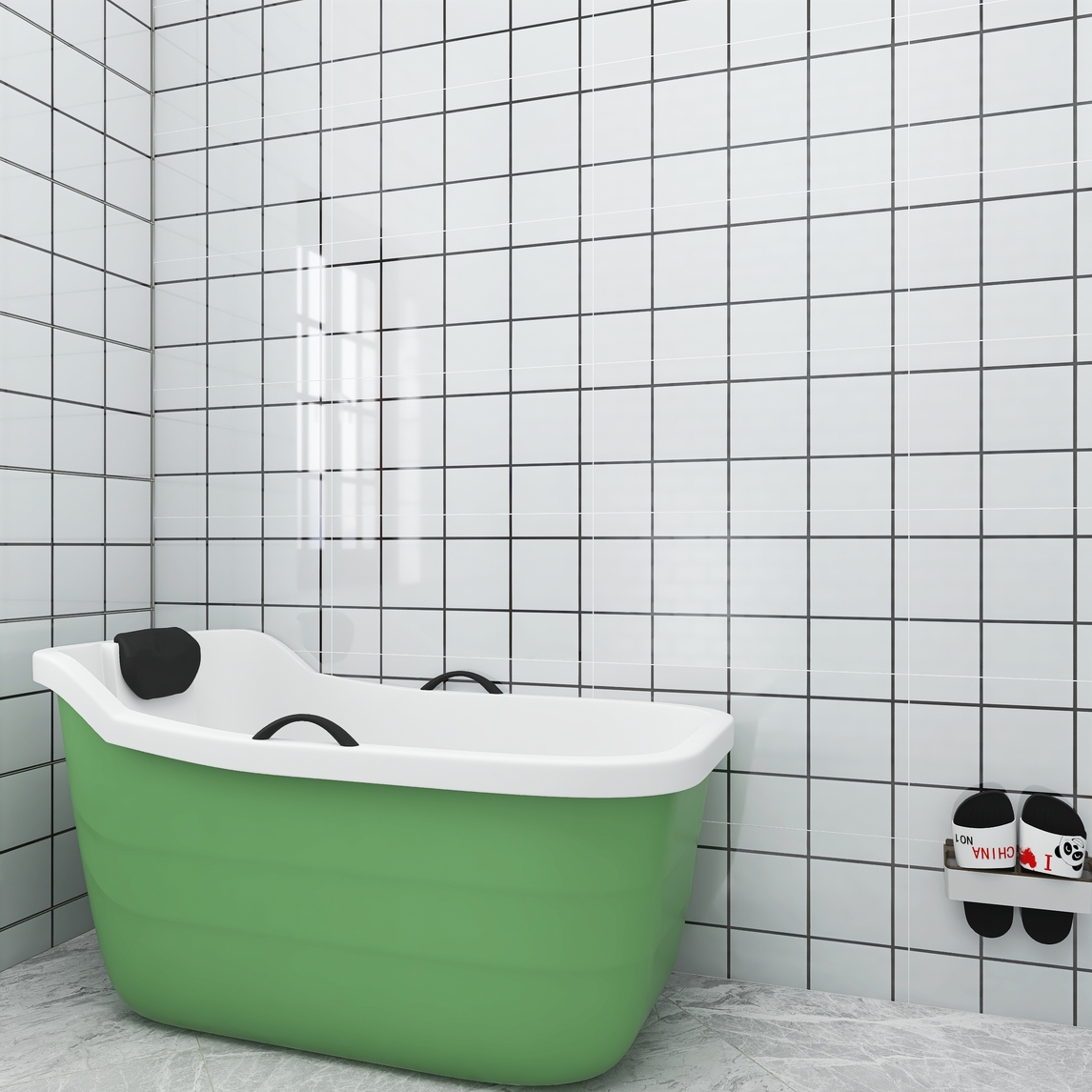 洁白的空间采用了白色调的釉面砖,加上类似砖造的线条,更具体现格调,也能让用户沐浴中有一个新的体验,与视觉冲击。