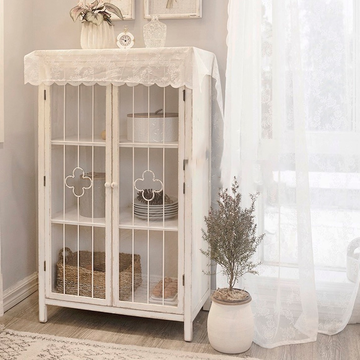 这款可爱的开门柜,总让人陷入童年的回忆中,很想外婆家的一件老家具像是在梦境中一般,柜体奶白色木质水性漆搭配复古铁艺小花,明快的线条又不失温度感,收纳更为直观方便,温馨而又浪漫。