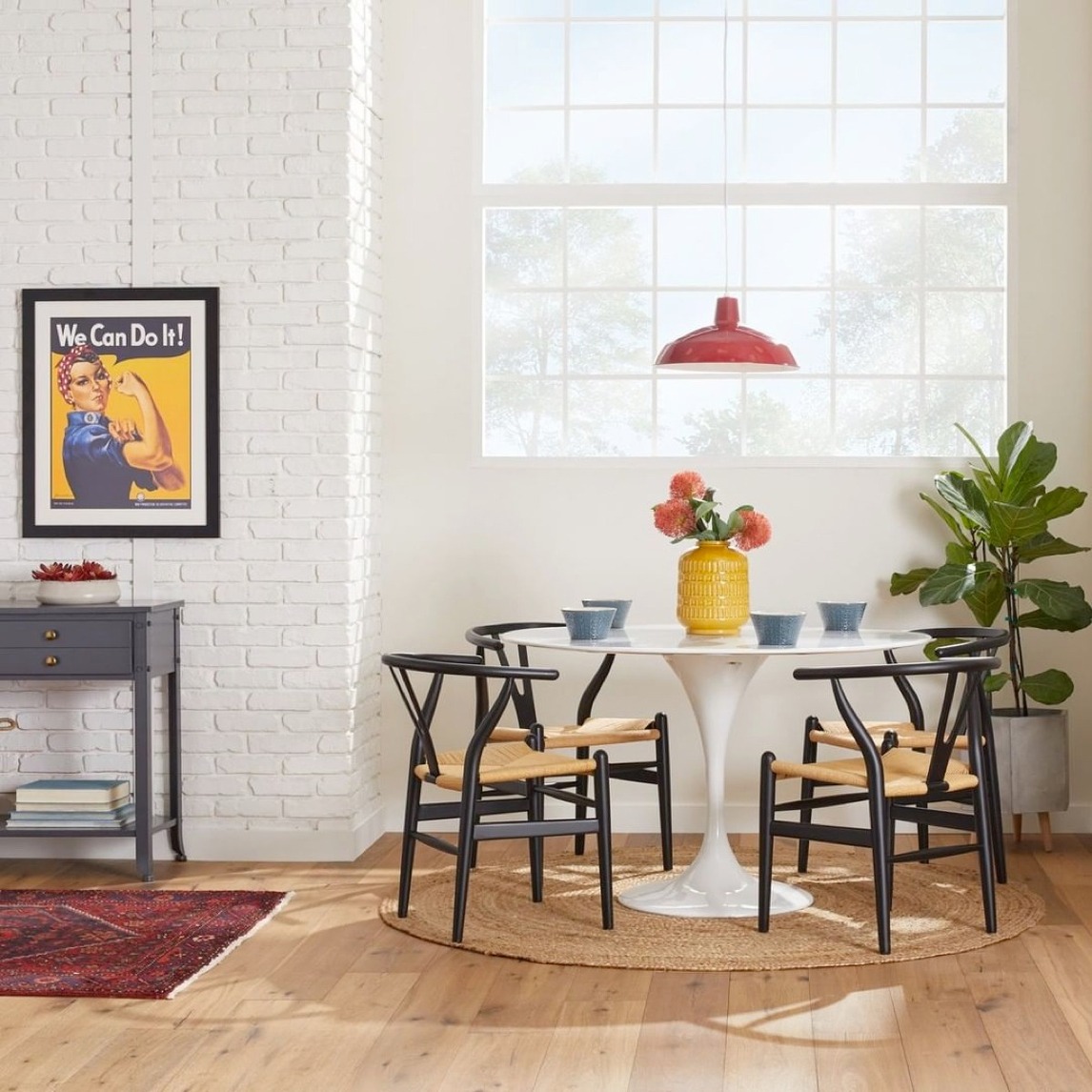 餐厅走的是复古色调,并辅助以黑框装饰画和单人椅作为点缀,营造出了一种素雅而充满秩序的观感。同时餐厅还选用了大理石风格的餐桌,不仅能够与大型绿植实现色系上的互补,还可以在无形中增加整体的舒适度。
