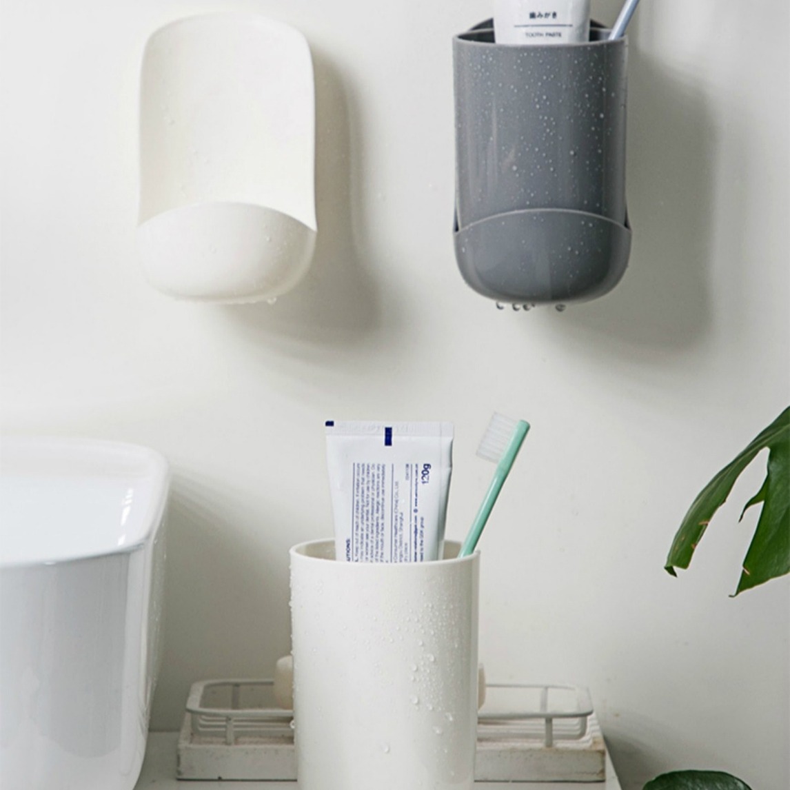 壁挂式牙刷杯架,正放倒放都可以,杯子采用pp材质,打磨光滑,手感舒适,正放收纳洗漱小物,倒放可以沥干水渍,粘贴牢固,节省空间,不怕水淋。