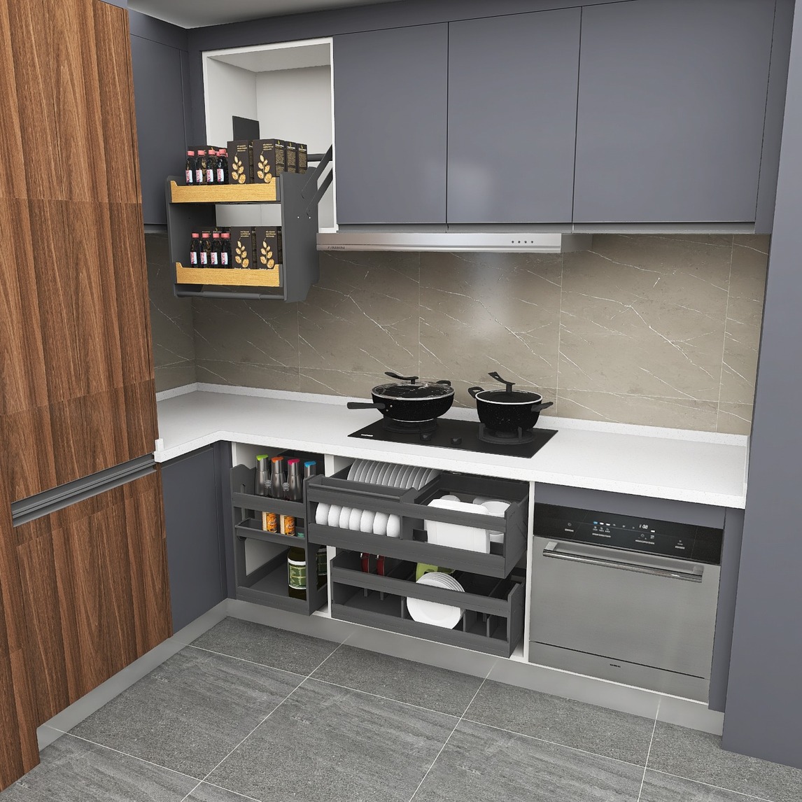 厨房量小花样多,不论是碗碟还是厨具,种类和数量都非常丰富。要想在狭小的厨房里挤进这么多东西,确实是需要分类明确,才好进行整理。