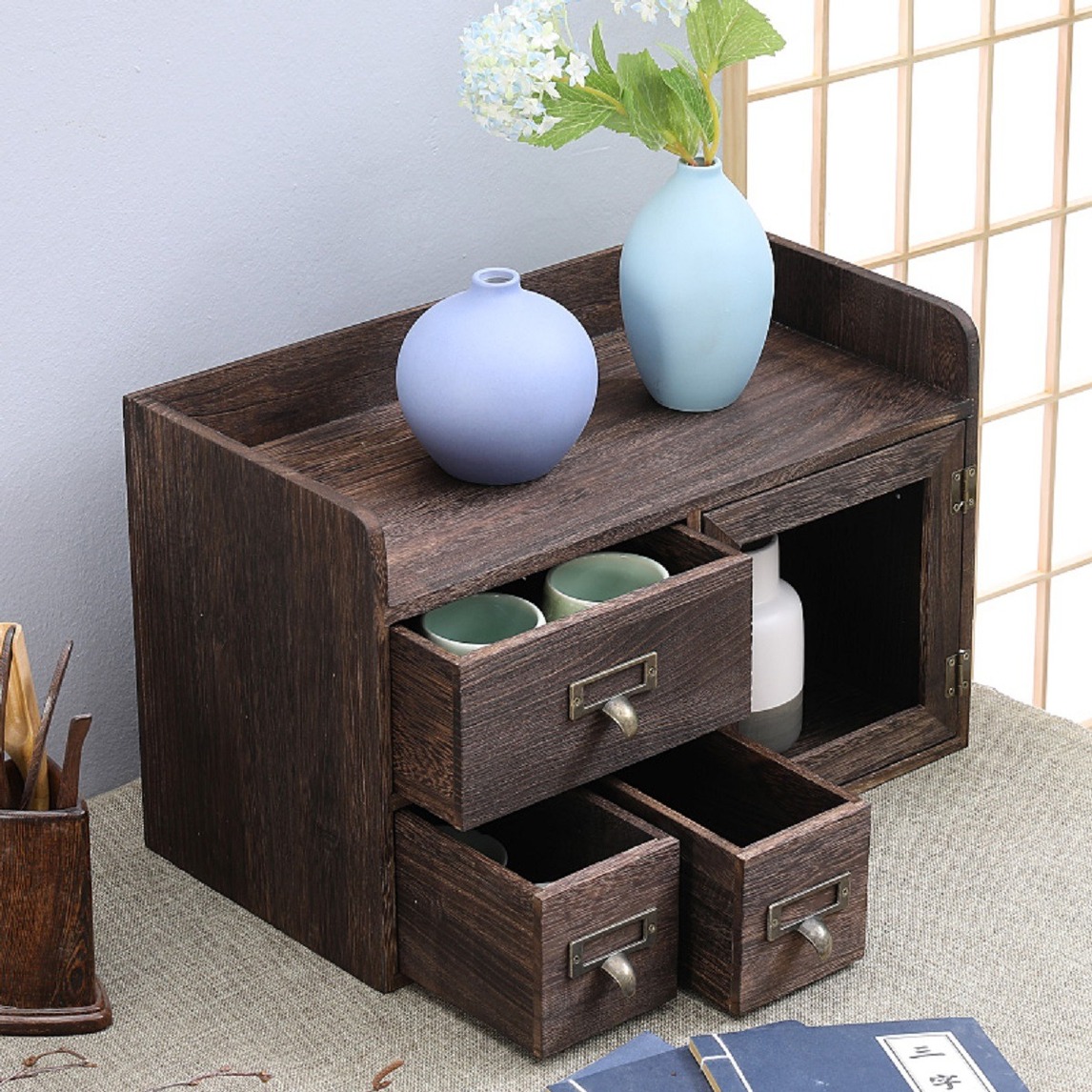 多层收纳设计,让物有所属,功能清晰实用至上,方便归纳桌上小物,轻松打造干净桌面。简约的造型设计,古朴的木纹色调,自然温馨,开启清爽桌面改造计划。