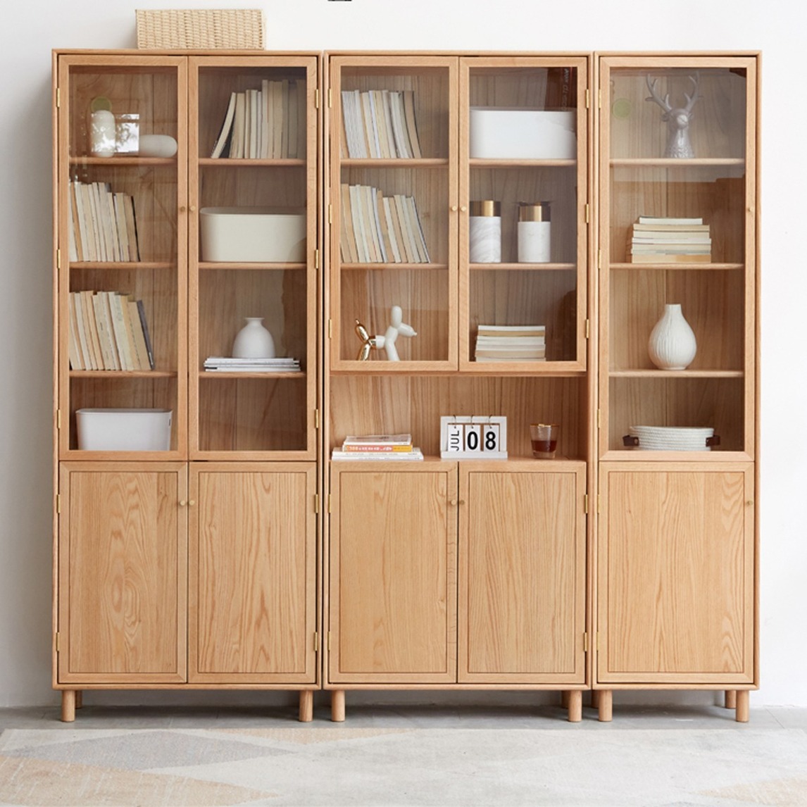 衣柜除了漂亮也要足够实用,我们做了多个隔层,就像一个小型图书馆,而其中有些隔层是可以上下调节的,这样放A4的画册也不是问题。