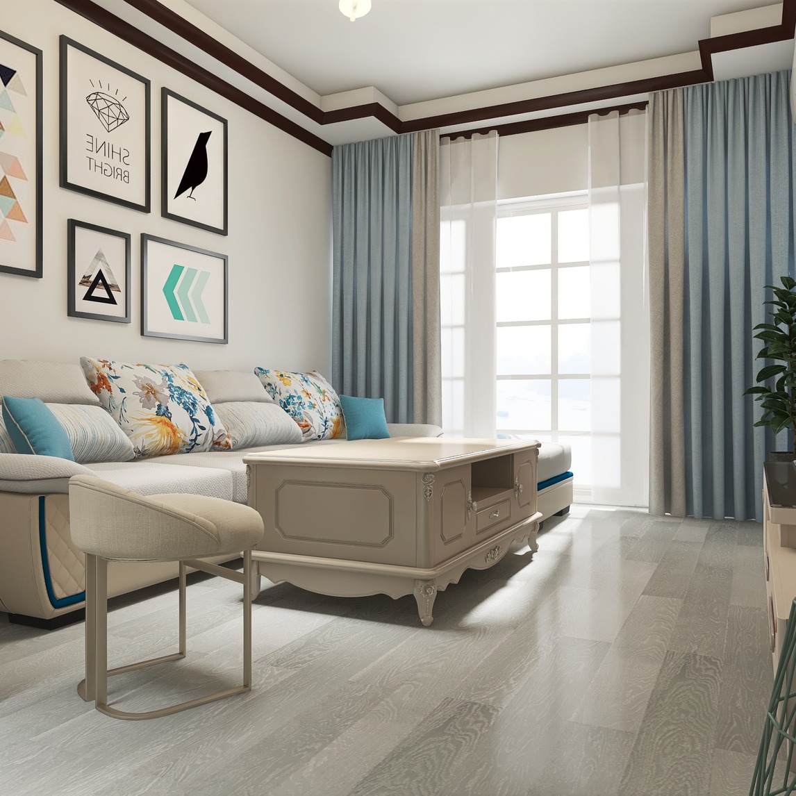 客厅采用淡色系搭配,会有一种清新自然的感觉,会使得心情舒畅,简单却方便适宜,轻松淡雅是这个客厅的主打风格。