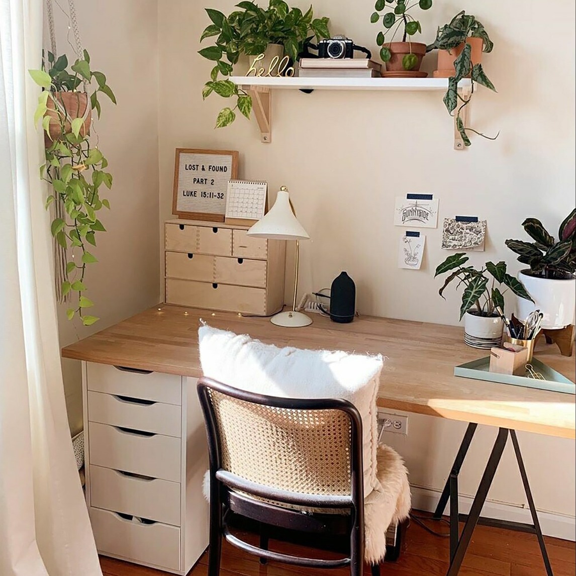 书房可以多摆点植物,在学习工作劳累之余,让眼睛放松。简约隔板可以多多摆放一些喜欢的盆栽,这样就能合理利用每一个空间,关键是还很好看。
