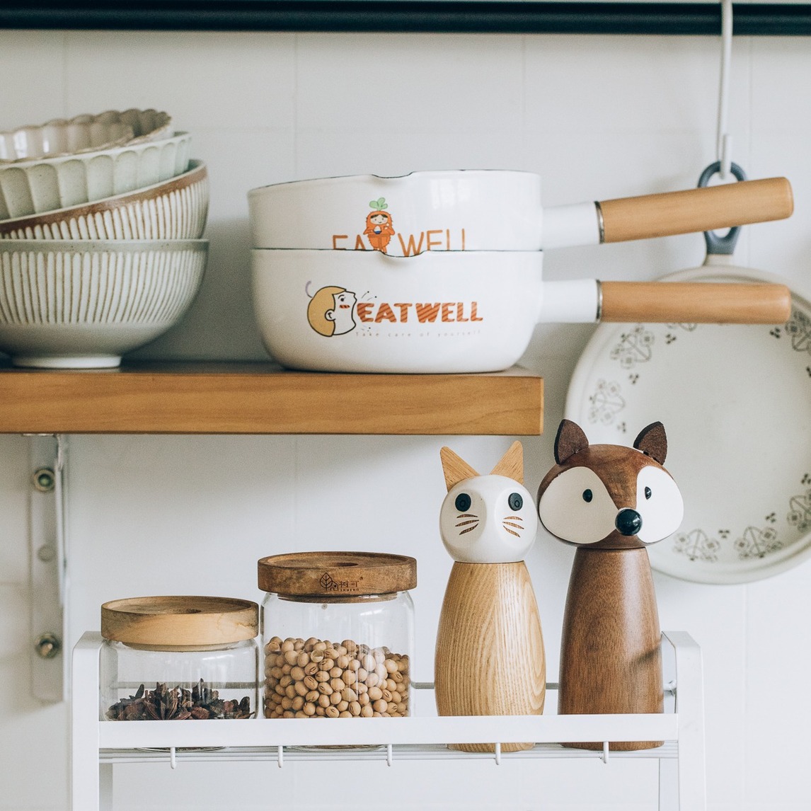 我们厨房可爱的小物件又增加新成员了。可爱的猫咪小姐吸引来了狐狸先生,哈哈,这里不讲故事。大口君的雪平锅也依然保持可爱,这么可爱的厨房器物看着满心欢喜。