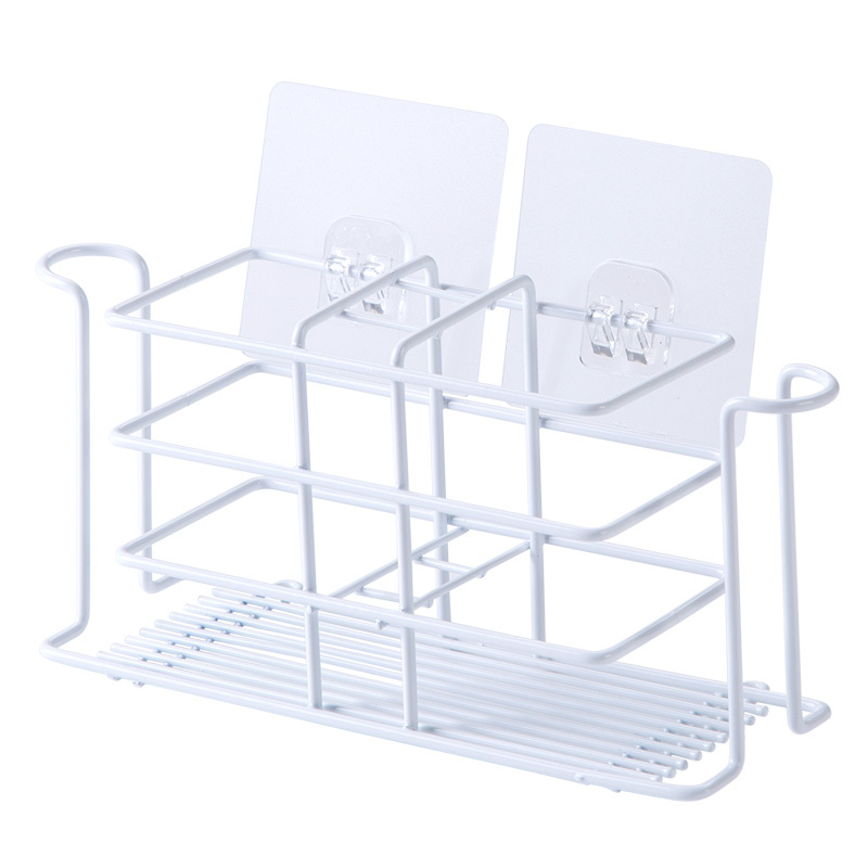 无痕粘贴式牙刷架,粘贴牢固不伤墙面,铁艺材质,壁挂省空间,牙刷牙膏、漱口杯等一架收纳,拿取方便,轻松洗漱。