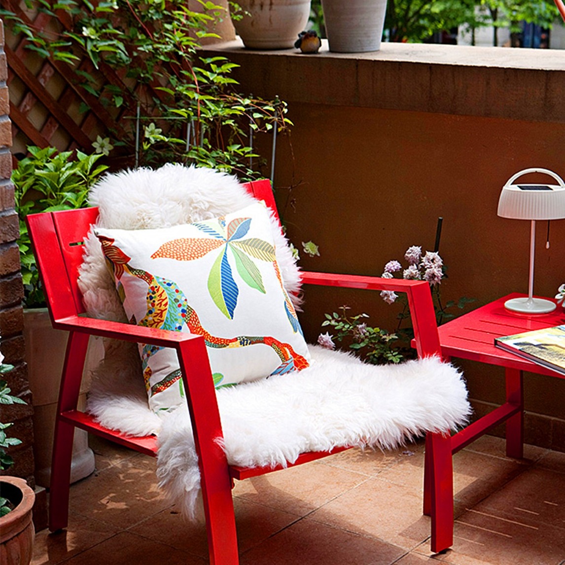 坐着艳丽颜色的椅子,舒适的人体设计给人舒适又惬意的感觉。阳光明媚的日子里坐下来,品一杯香茗看一本闲书,在大自然里放空……