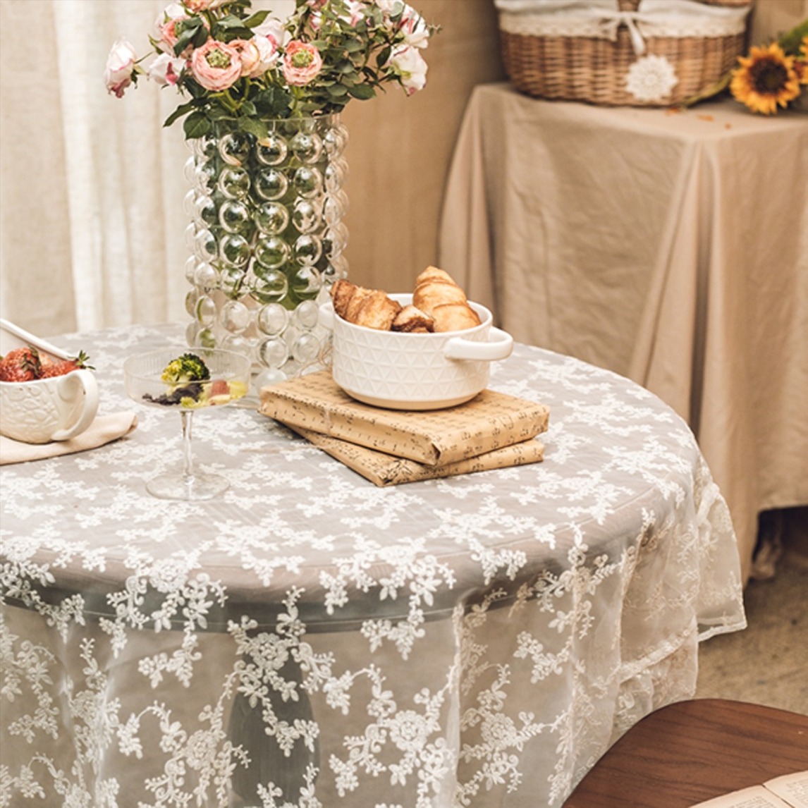 法式风格的餐桌布,素雅的米白色色彩,温柔又神秘,蕾丝风情柔软地妆点桌面,给你家添加洛可可时期的温柔。
