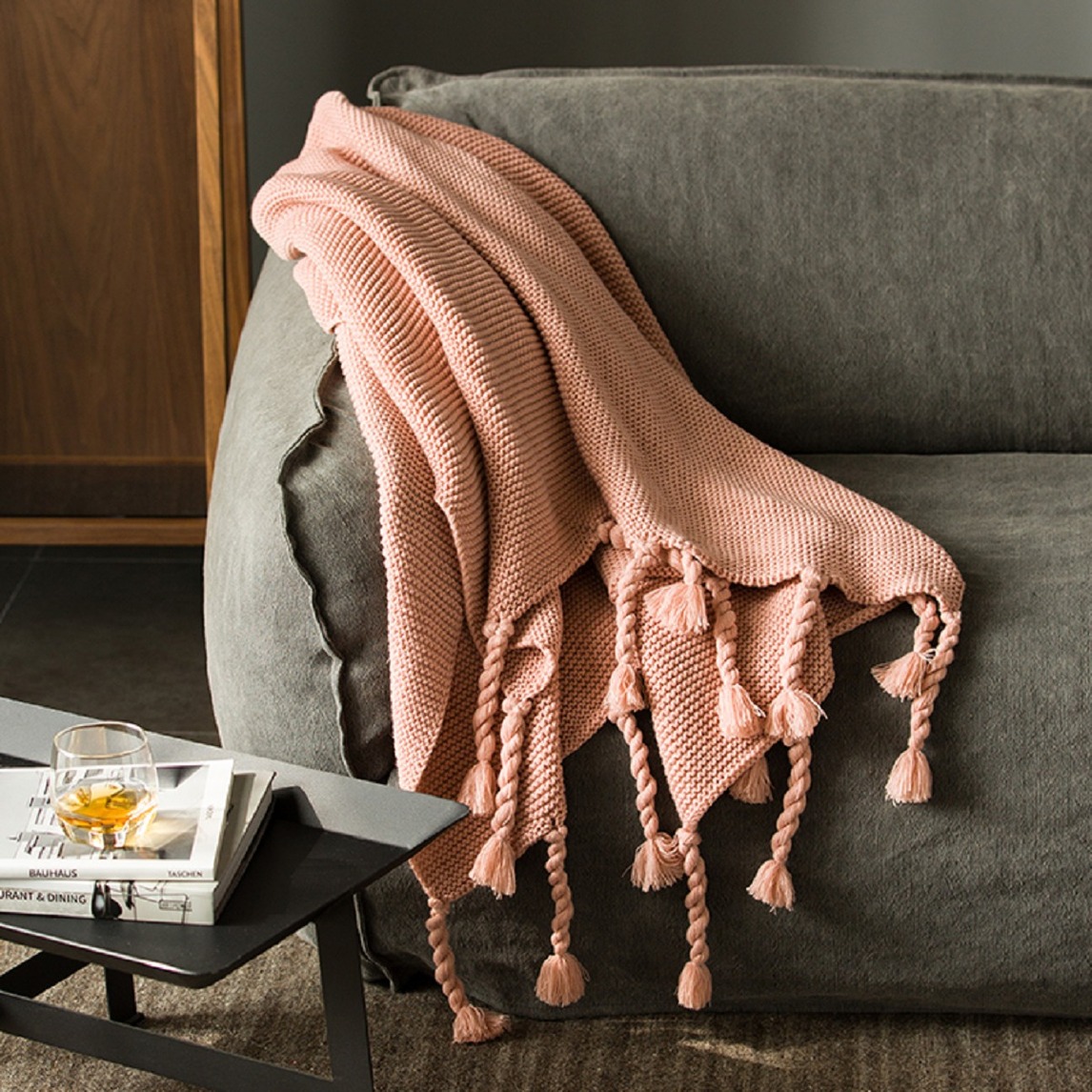 优质晴纶面料,触感柔软,亲肤舒适,平滑细腻,透气性佳,手感爽滑,可当办公室披肩、家庭多用毯、宝宝的贴身盖毯
