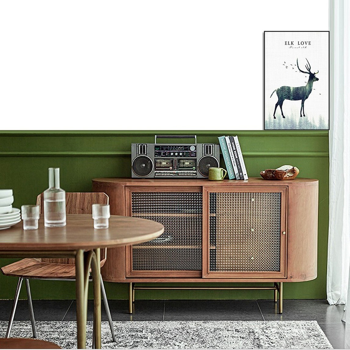 空间里搭配的餐边柜带着长虹玻璃朦胧的质感和实木的复古的韵味,有着特有的年代感与温度,给人沉稳、格调十足的视觉感,成为餐厅里的一道赏心悦目的风景~