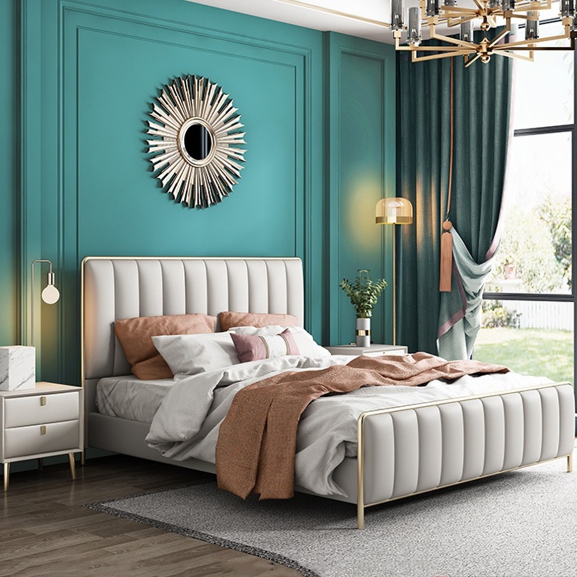 轻奢金与皮艺的艺术碰撞,打造有格调的真皮双人床。轻奢北欧真皮床,引领轻奢新风尚。意大利进口恒温纳帕皮,健康环保,强耐磨抗拉扯,透气舒适,柔软细腻。