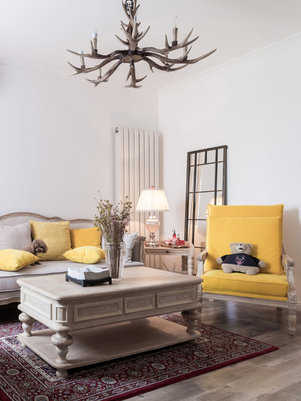 当你进入居室你就看到这款创意吊灯时,打造出独一无二的客厅装饰。下面沙发上再摆放一款黄色调抱枕,为居室带来一道靓丽的风景。旁边再摆放一款水晶台灯,摆放再那有效提升档次感。下面再摆放一款法式实木茶几,美观...展开