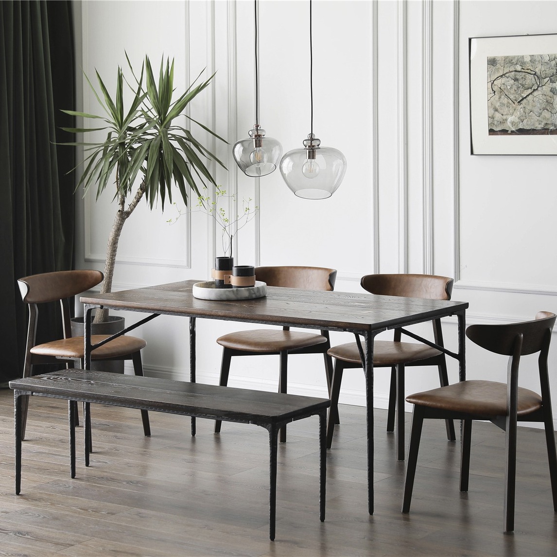 有沉淀的美感 是简单的复古风家居 物品不多 但细看都是高级质感 /浅色白色的背景 让家更加偏向高级感 增加了质感 /运用金属和玻璃吊灯 复古感满满 /深浅对比 空间家具的偏深色和浅色背景的对比效果~...展开