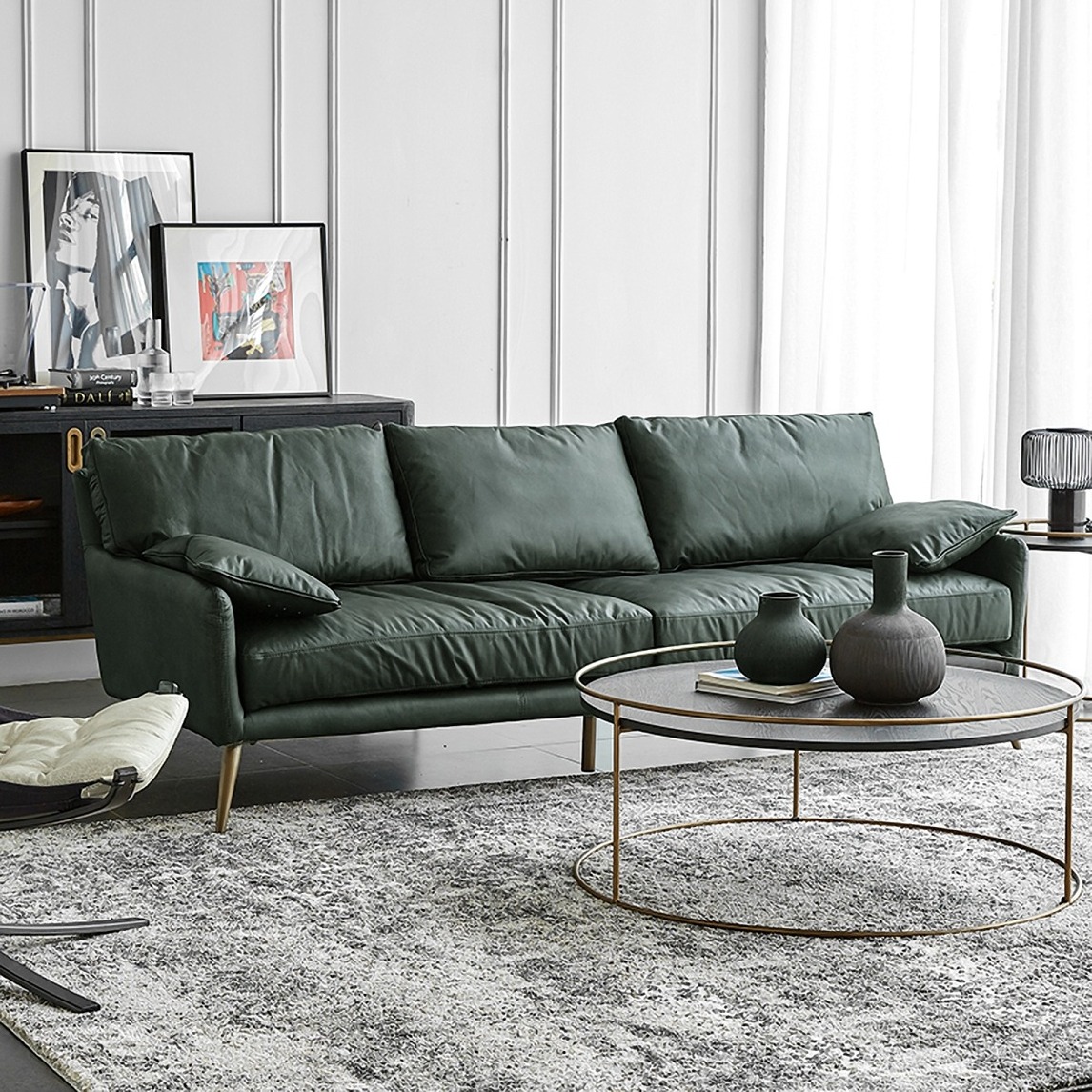 空间中的沙发采用巴西进口的牛皮面料,复古蜡变皮工艺比纳帕皮更透气、更灵动,搭配艺术感金属铁艺茶几,让你体验到真正的尊贵享受!