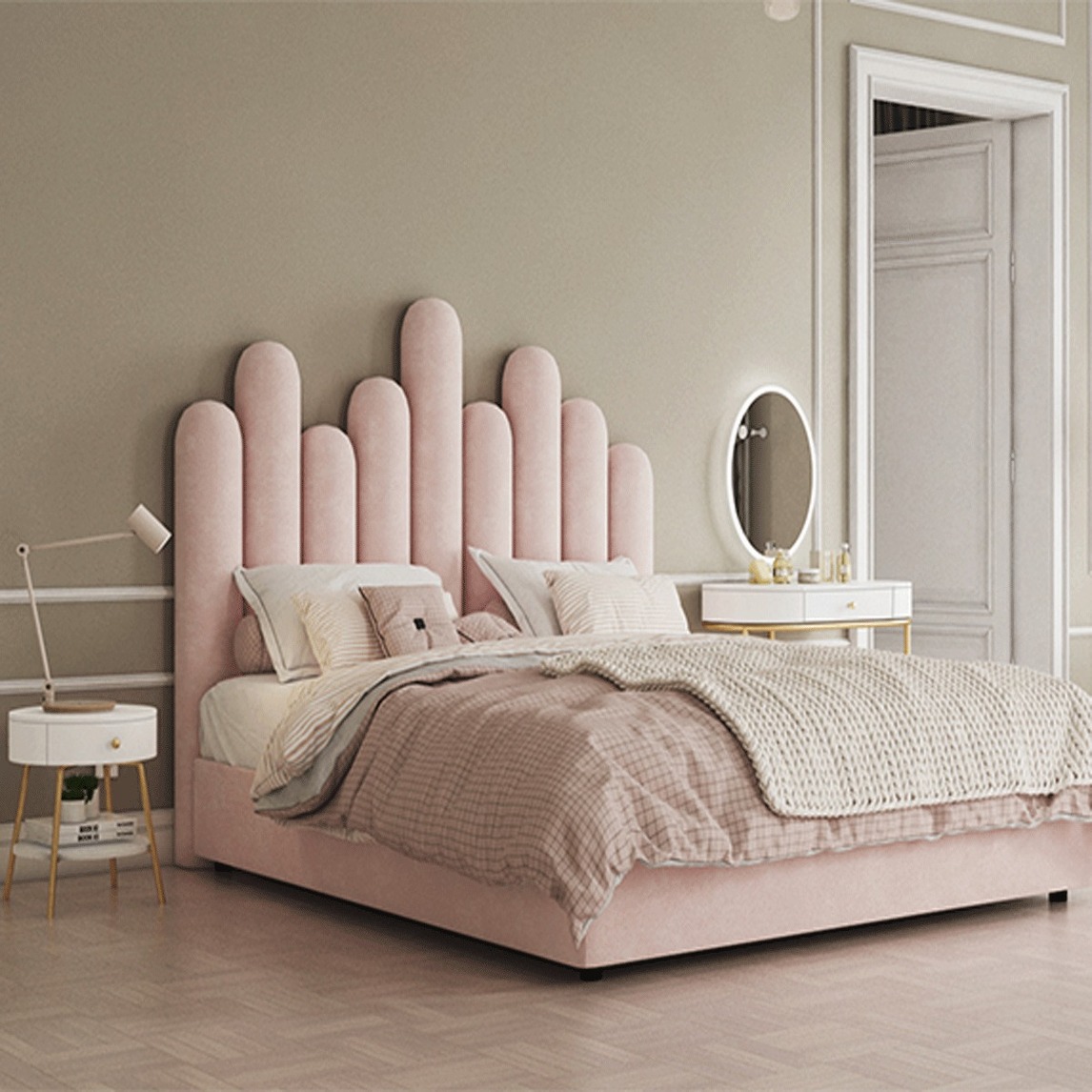 这是一款甜美网红款布艺软床,采用粉色的荷兰绒感布艺,厚实饱满的床头,高密度海绵填充,带来柔软舒适的倚靠。高级绒质感柔软顺滑,边角打磨光滑有质感。甜美的马卡龙色系,为卧室增添浪漫的额格调。