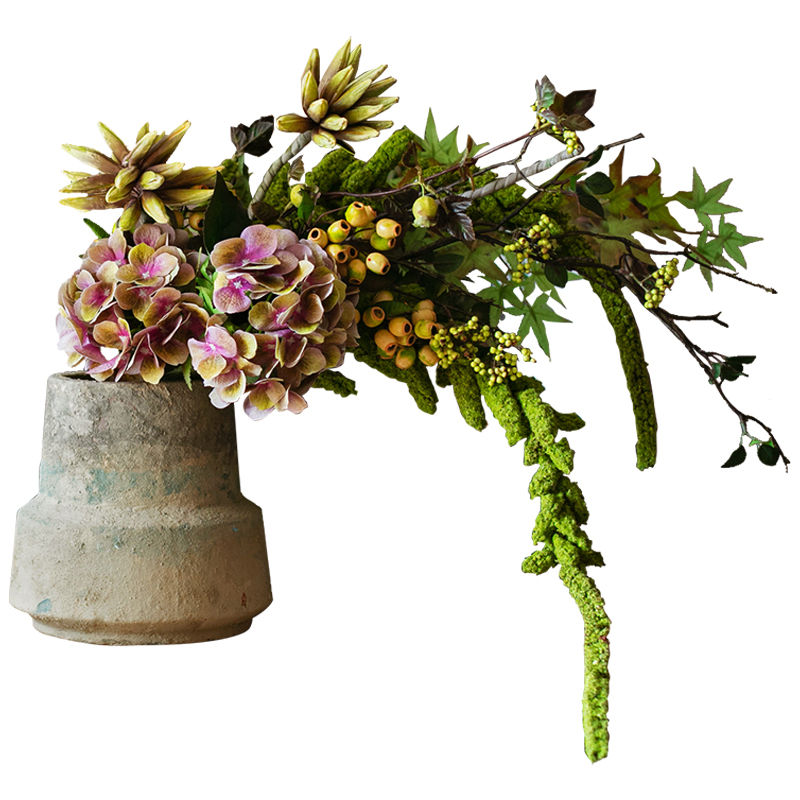 超大谷穗+玫瑰果+绣球花,自然野趣的花束场景感强,搭配一款雕花设计法式复古风情浓郁的花瓶,配置在玄关、客厅都很美,妥妥滴扮靓你的家居空间!