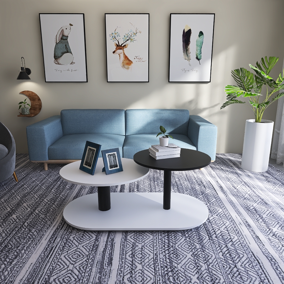 素雅的米灰色墙壁干净又清新,墙壁上的现代装饰画很好的修饰了空荡的墙壁,更加有美感,实木的蓝色沙发为客厅增添了不少清新感。