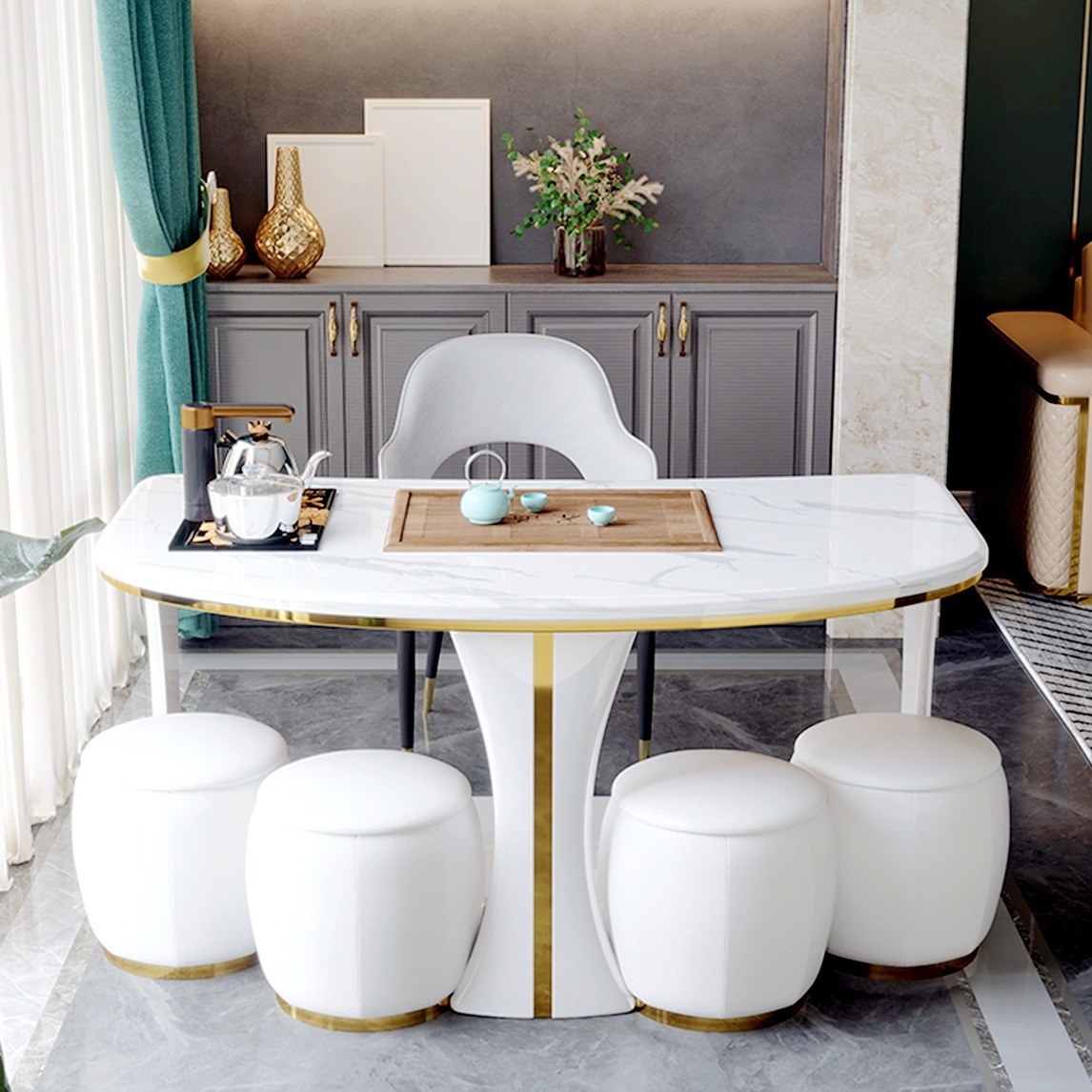 这款欧式茶桌打破陈规,让茶台和都市年轻人相容,简约和极具个性的 外观,可收纳小圆凳子让空间更简洁,稳固的实木结构,大理石的高价值感,再配上大品牌金灶茶炉,年轻人非常喜爱。 白色窗帘,享受阳光洒落在茶桌...展开