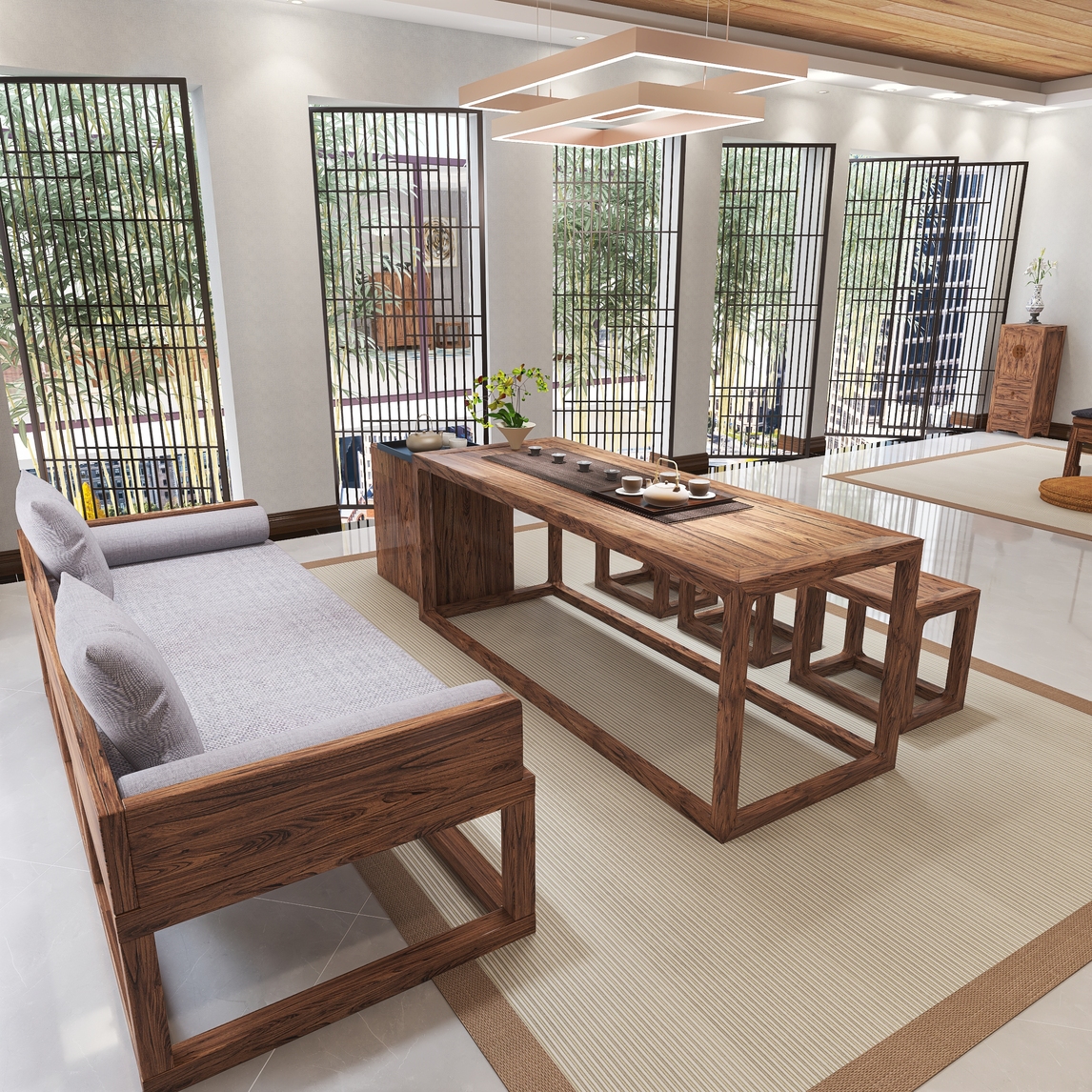 新中式风格是在传统中式风格的基础上,进行了材料、工艺、造型方面的改革,使得新中式更符合现代人们的需求,这种需求是:对传统中式风的古风禅意的需求,同时又对现代风格所崇尚的实用功能的需求。