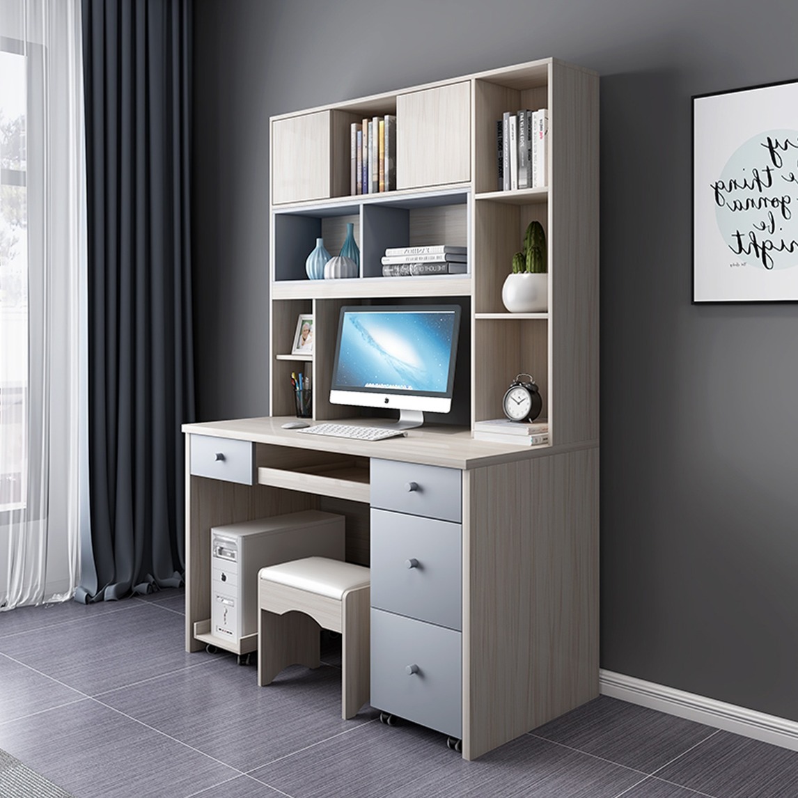 E1级环保板材,为孩子提供安全健康的学习环境。安全守护,环保材质,舒适触感。高挑实木脚,为桌子留下更多空间。缓冲五金支撑,可调节缓冲程度,避免夹手造成伤害。圆形拉手,精细打磨工艺,触感细腻,便捷线孔,...展开