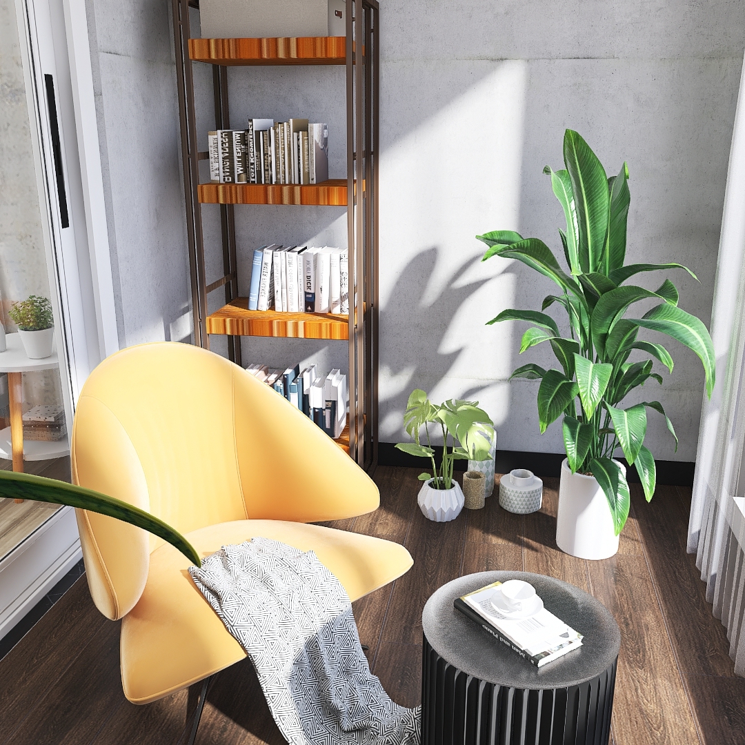阳台选用工业风设计而成,让整个客厅看起来非常的明亮干净,绿植的加入让阳台显得更加有生机和活力感,舒适的环境带来一个可供享受的小空间。
