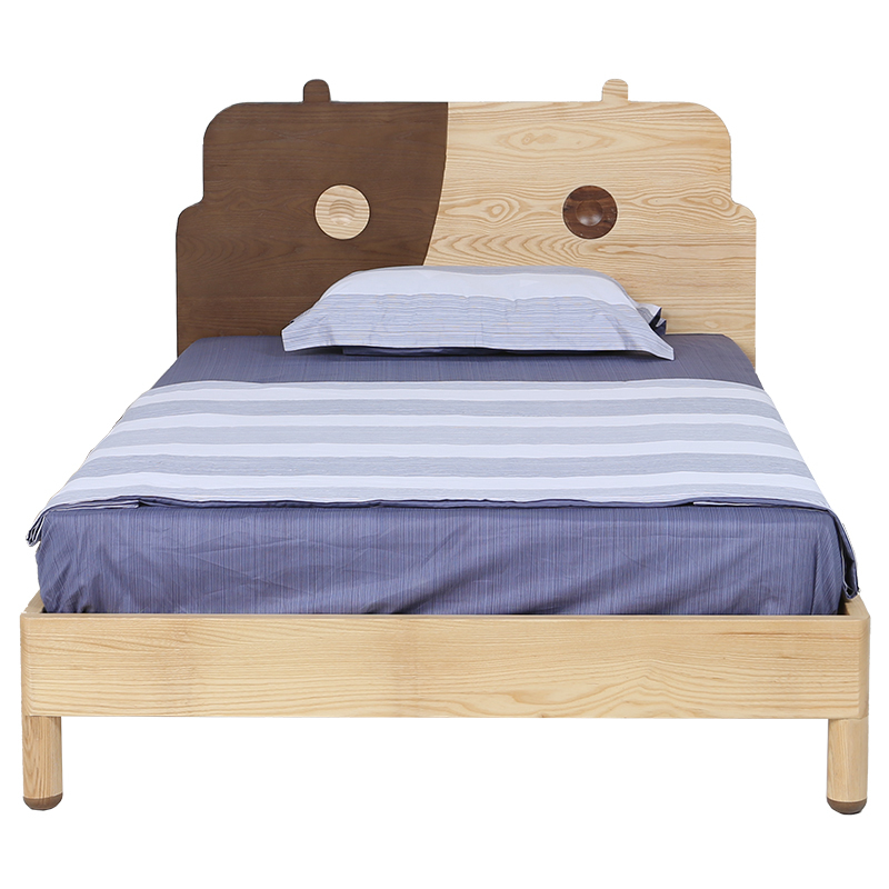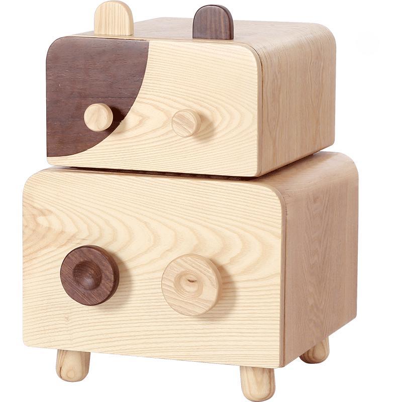 奇趣生动的奶牛床,给房间增添趣味。 实木儿童床,床头奶牛图案,精雕细琢,让孩子开启奇趣探索之门。 实木卡通床头柜和实木衣柜,全实木材料打造,健康环保,不会对宝宝造成任何伤害。卡通图案,小朋友都喜欢哦。
