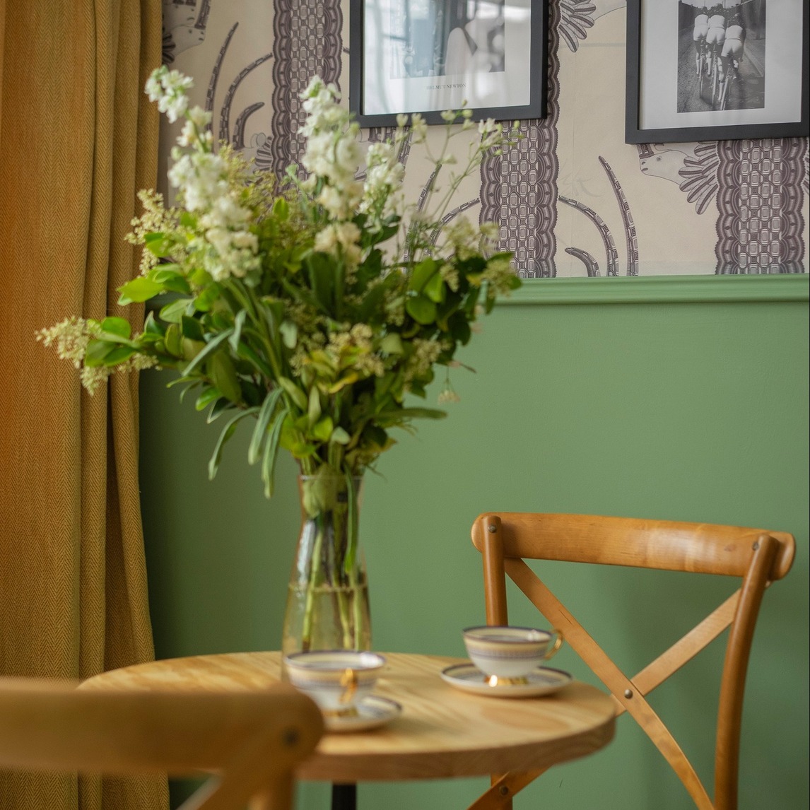 【原创设计·设计师杨桃猫】我希望居住者在这里用餐时,还是能够有优雅浪漫的氛围,加之这里的墙面刚好是对称结构,就做了半墙壁纸处理,用花纹来丰盈这块空间。在选择壁纸时我脑子里一下就蹦出了Cole&Song...展开