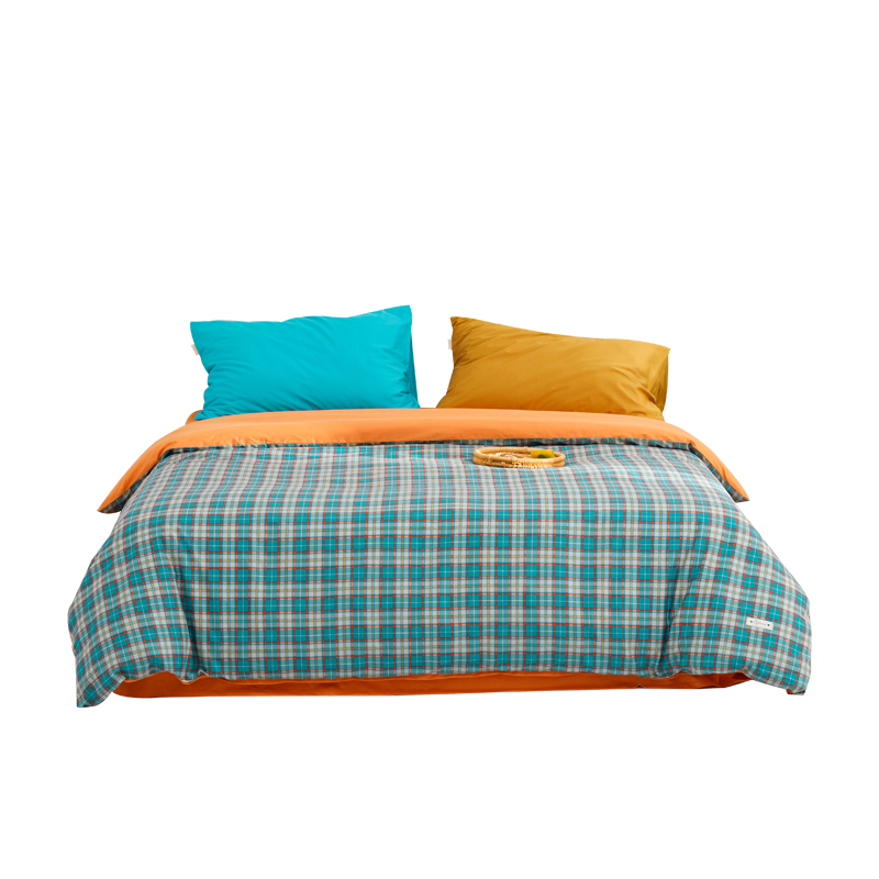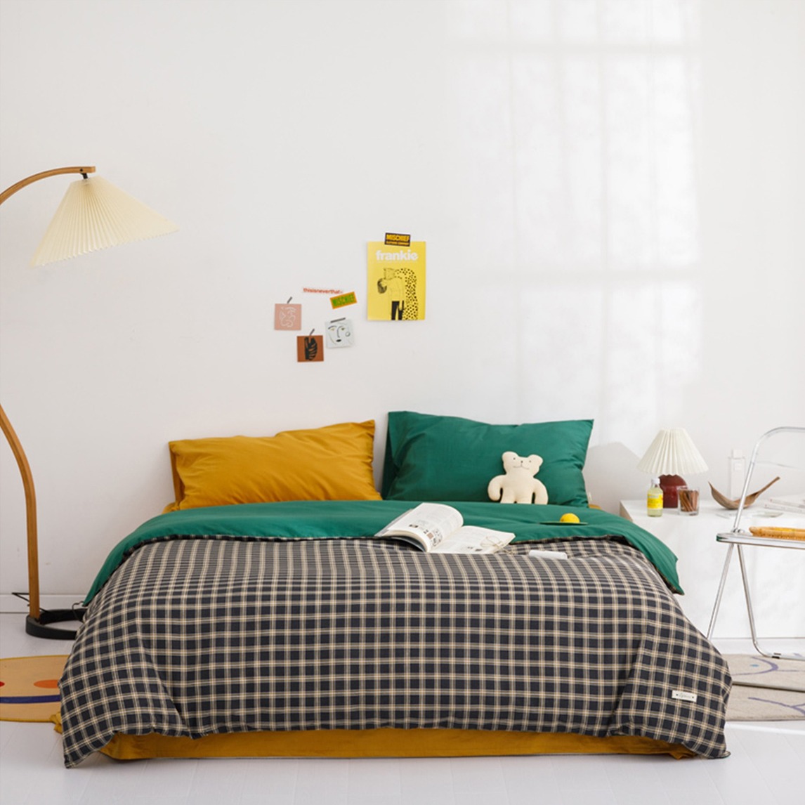 让复古与清新很好的融合到一起的卧室设计,ins风格纹全棉四件套,大胆的撞色,很是吸睛,搭配创意落地灯和地毯,让空间碰撞出新的美学。