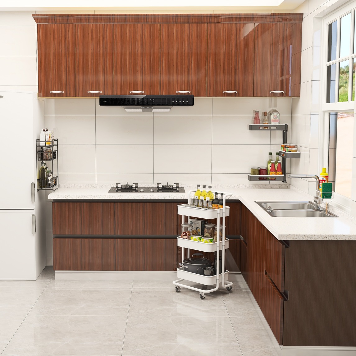 厨房收纳虽说不易,但也不难,只要选对架子就能搞定。像一直堆积瓶罐的台面,可以选择多层调料架进行收纳,不占地,储物点翻倍。还有窄型的冰箱侧挂架也可以安排上,细小杂物全放上。可移动的调料架,沥水架。只要把...展开