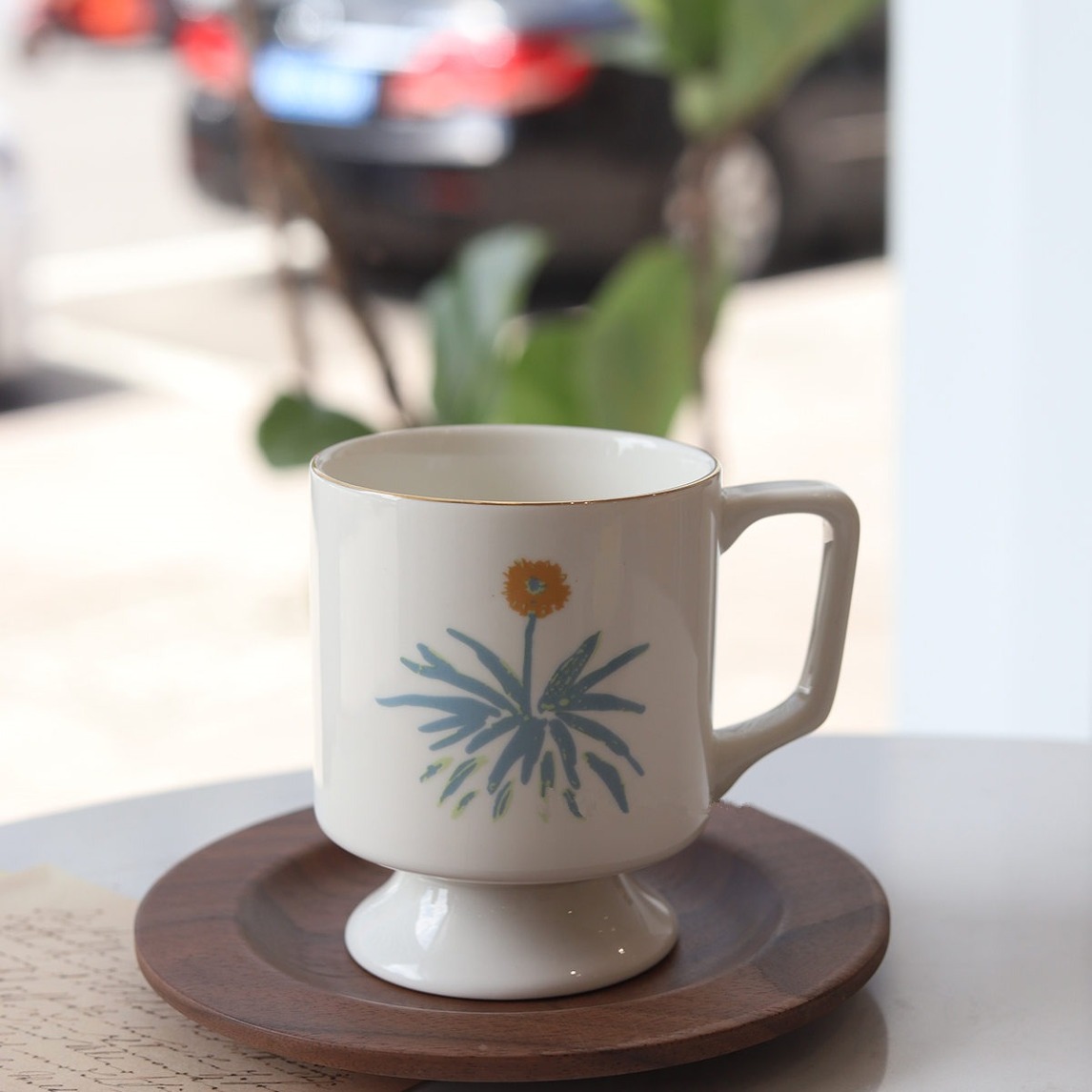 复古的高脚咖啡杯,外观独特,轻松彰显出家的格调,蒲公英印花图案点缀,挥洒写意的生活,在家也能整出浪漫小情调。