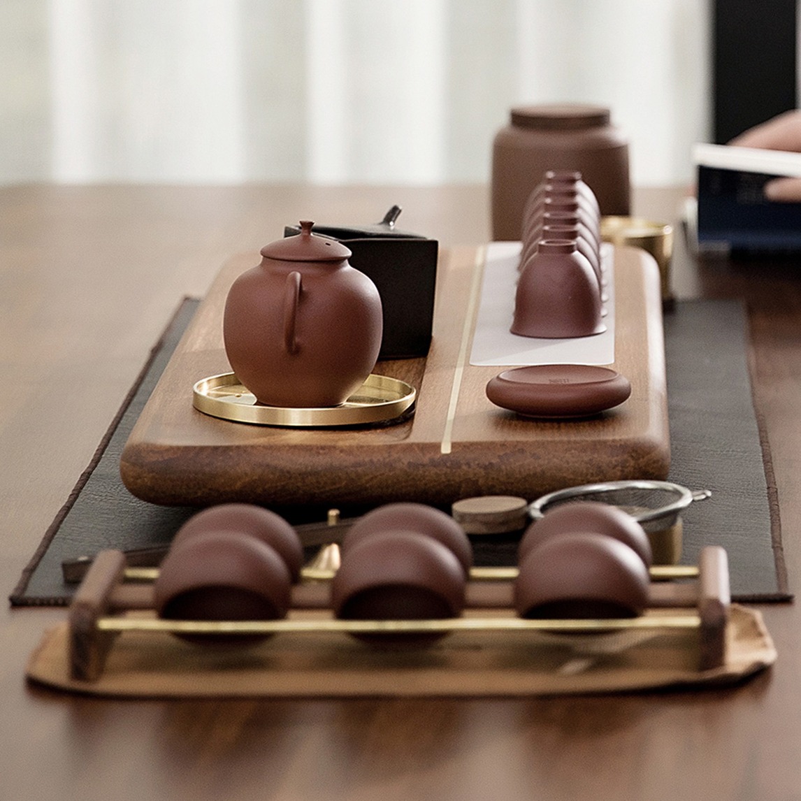 茶盘在茶具里仿似配角一样存在,但却是不可或缺。在传统的茶席中,有了茶盘,茶壶或盖碗、公道杯、茶杯、茶宠才不会显得各自孤单。