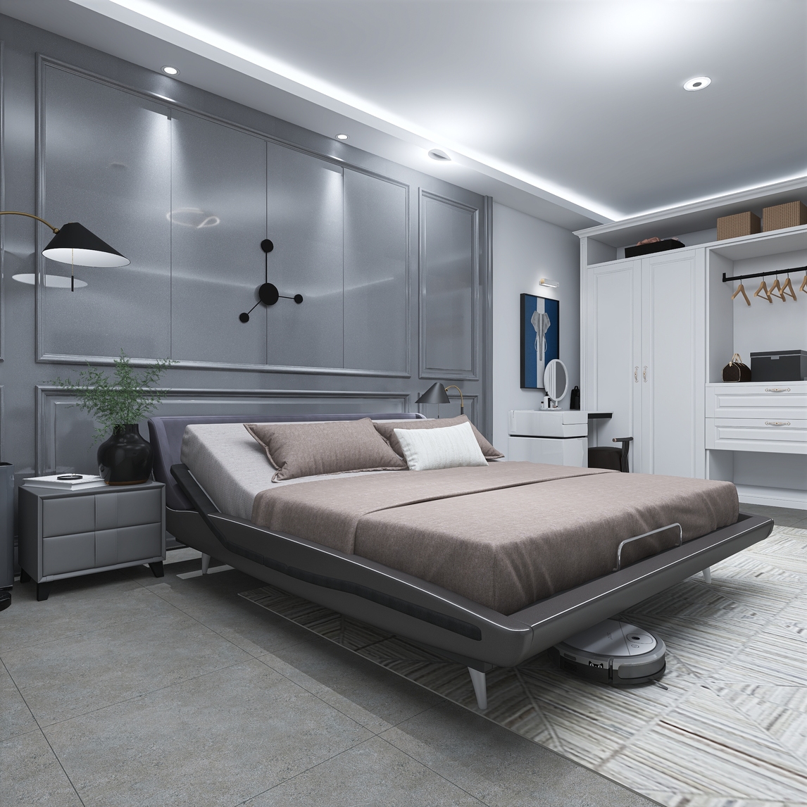 高级大气卧室,舒福德智能床的SPA按摩让你卸下一天的疲惫,感受零重力模式下的零压感受,被床垫牢牢包裹,助力深度睡眠。打鼾干预功能让你远离鼾声干扰,享受一夜好眠。还能实时记录身体数据,疾病提前预警。让你...展开