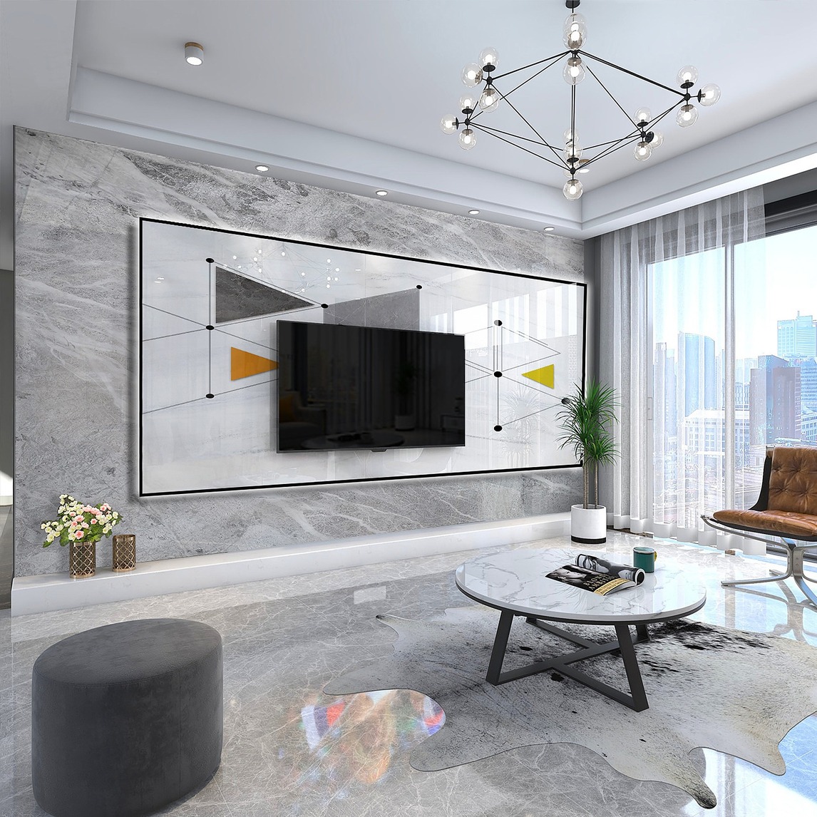 大理石纹作为背景墙,与整个设计空间融合, 使家居环境充满设计感,立体感。简单的利用大板几片的组合,在彰显石材自身独有的艺术同时,又增添了灵动之美,体现了主人的品味。
