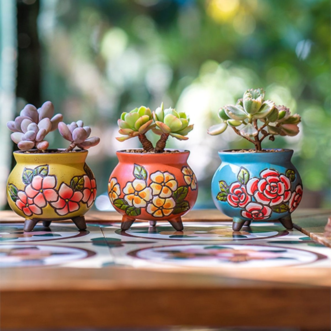 复古手绘延禧花盆,真是摆哪都好看,立体浮雕,纯手工绘制,优雅的花朵图案,精致又处处展现出古典美,大口径,种小桩也是可以的。