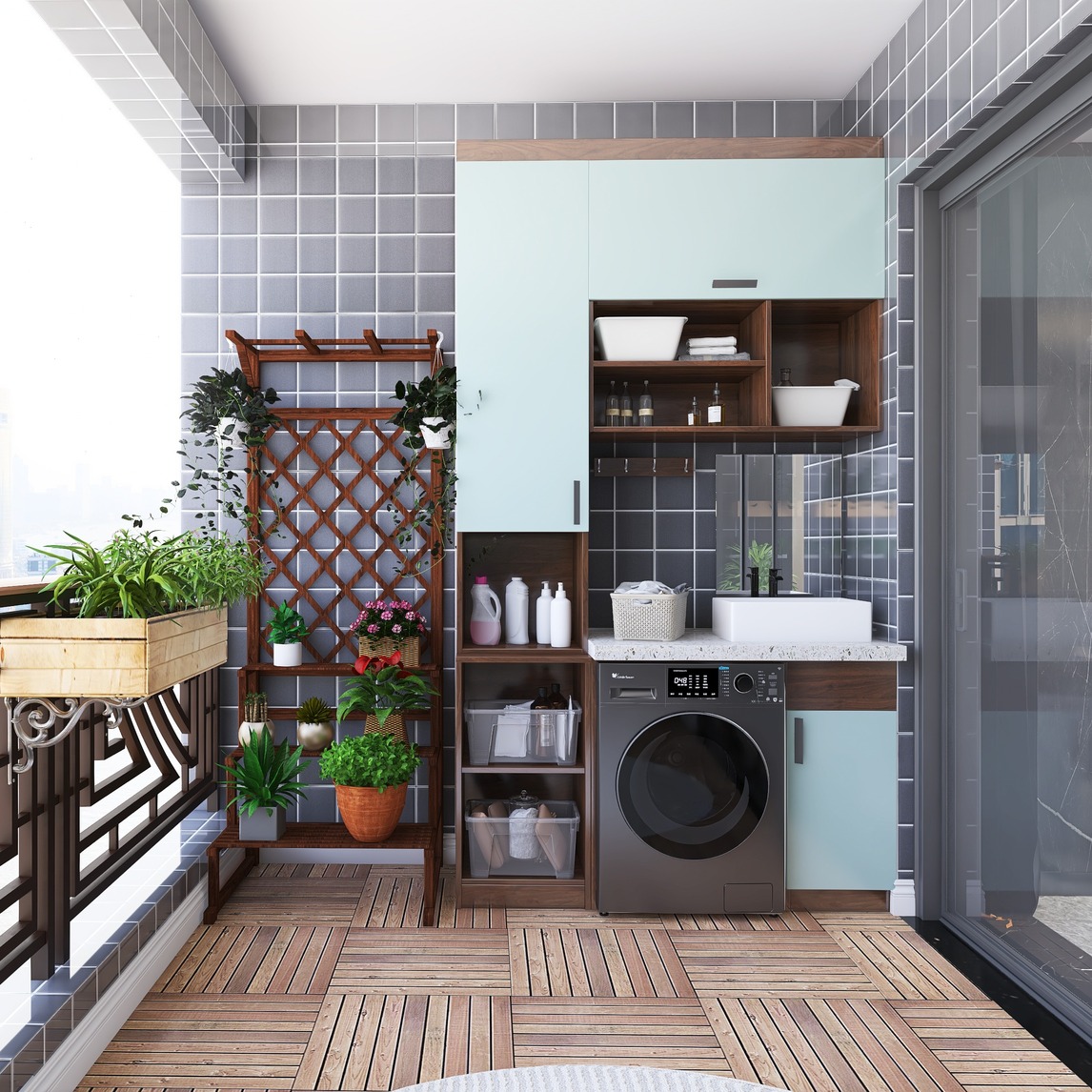 阳台光线明亮,通风良好,我们一般会用来呼吸新鲜空气、晾晒衣物、摆放盆栽,时间一久,难免会堆放很多杂物。其实阳台区域规划得好,不但能够承担物品收纳,还能延伸出更多功能。薄荷绿色加上线条刚硬的墙砖,整体休...展开