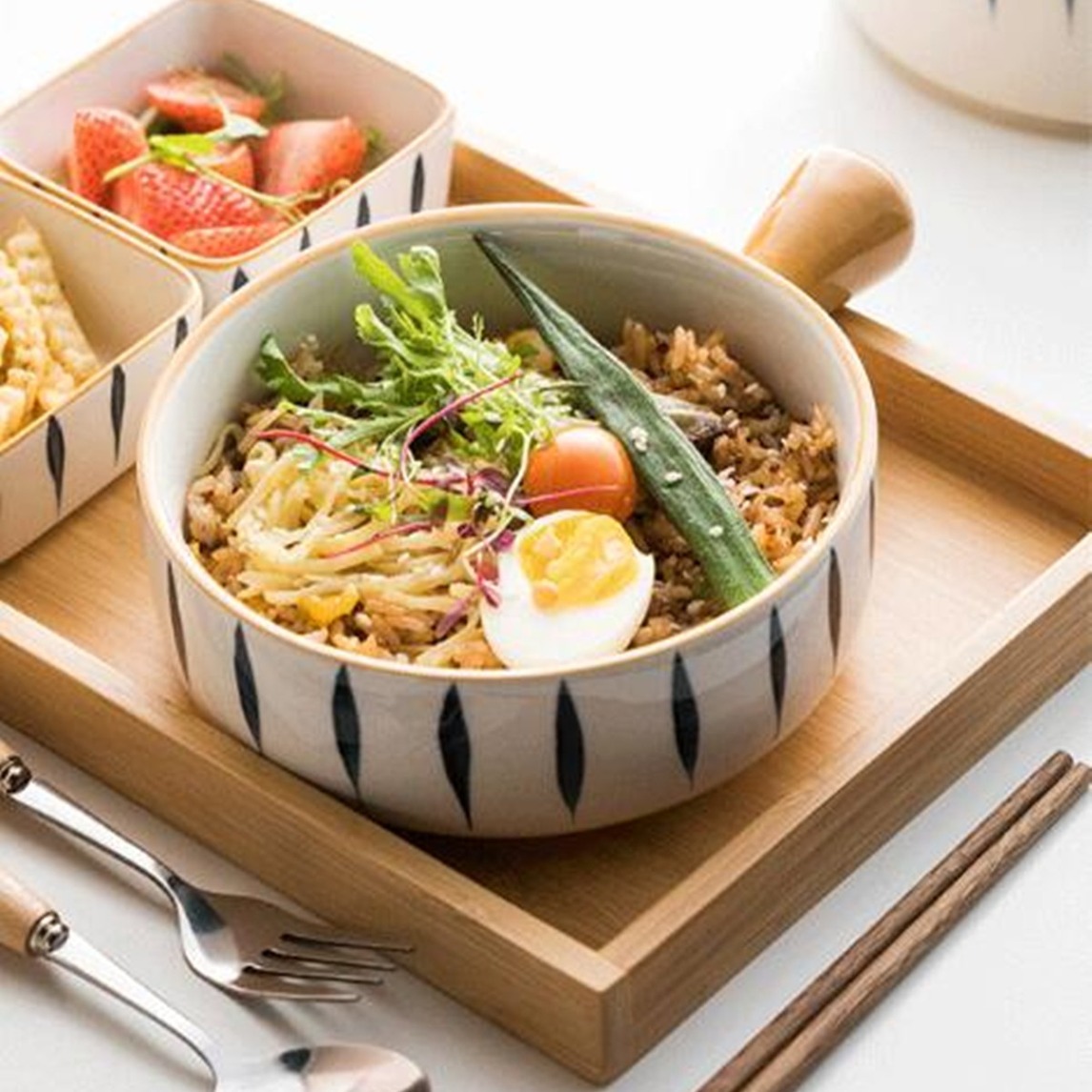 双耳汤碗,浓浓的日式古朴韵味。三种款式四种花色可选,方碟可用来摆放小食或水果,搭配竹木托盘餐具等,整体复古雅致。