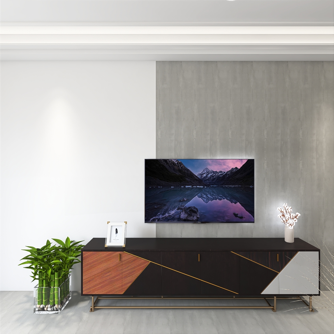大白墙、水泥砖进行搭配,构成一个简约空灵的气质空间;电视柜经典黑白配的运用,凹出大气时尚范;在视觉上增加的空间的轻盈感,让客厅显得高冷而充满艺术氛围。