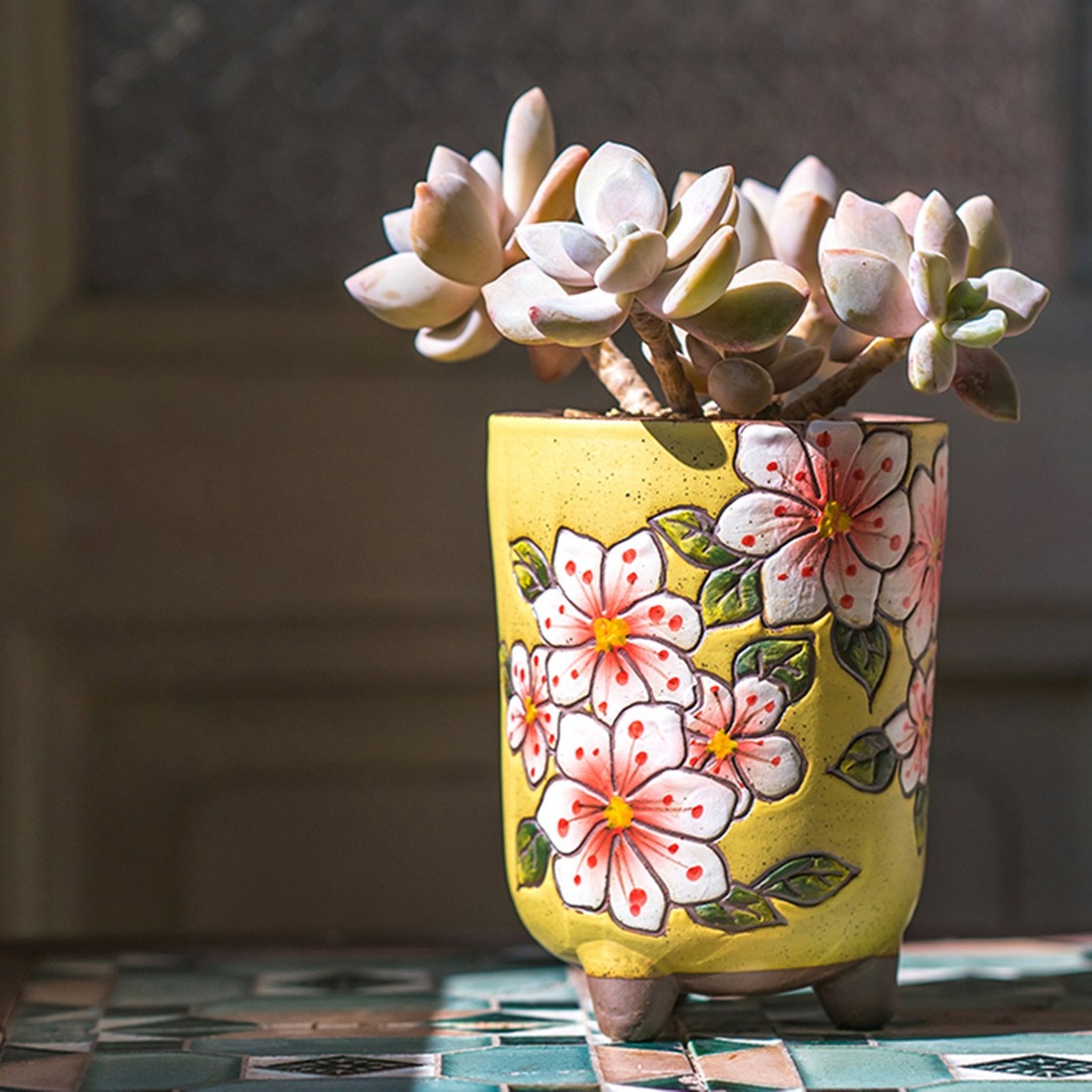 如诗如画的延熹手工粗陶花盆,精美的手绘图案,精细的手工粗陶材质,再种上肉嘟嘟的多肉,这样的美,让人心醉。